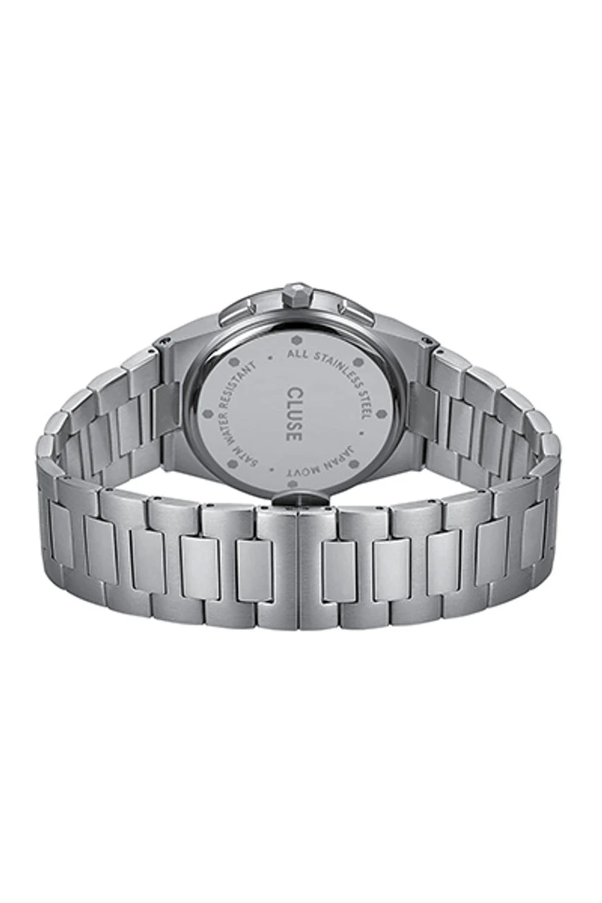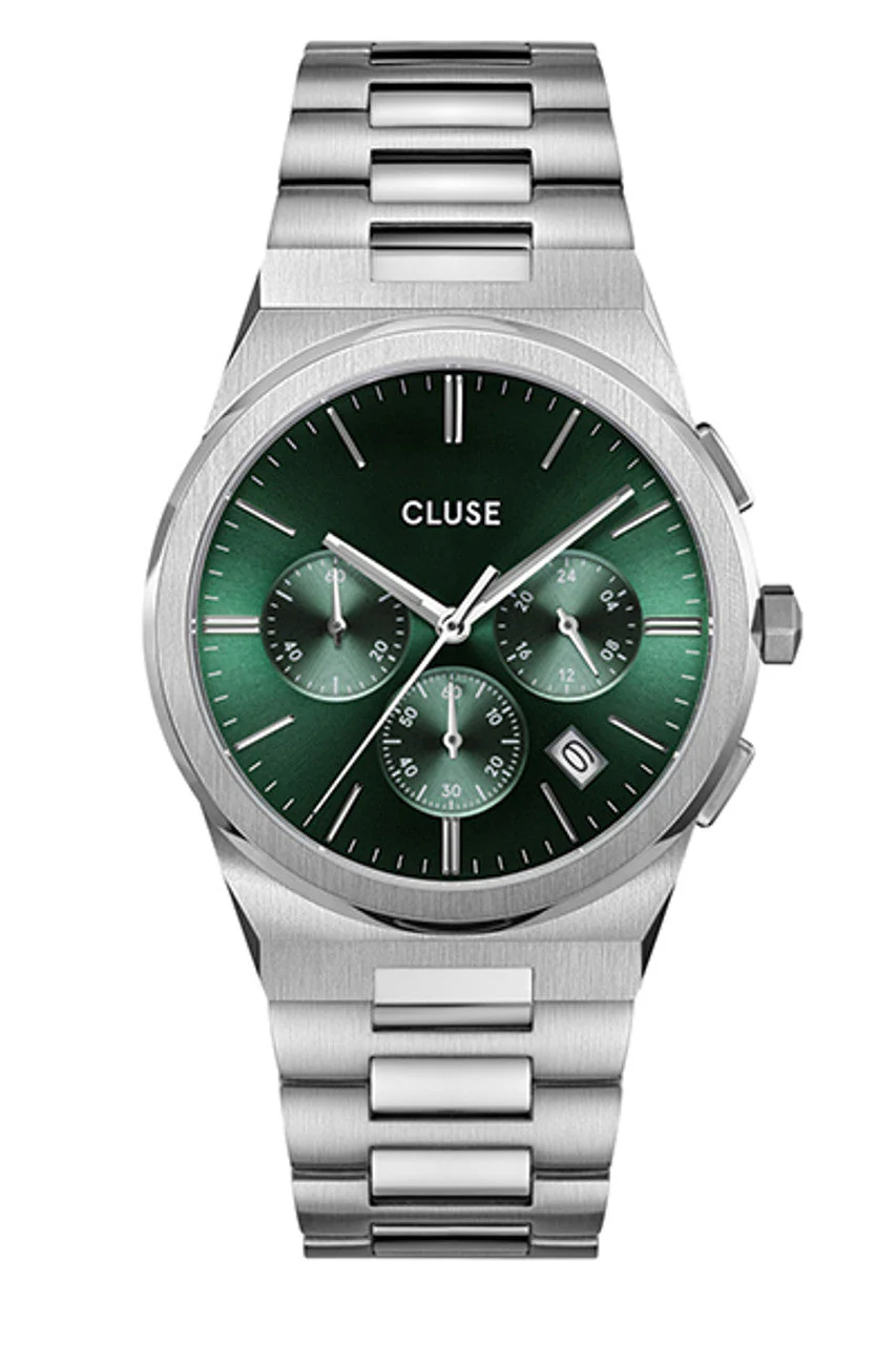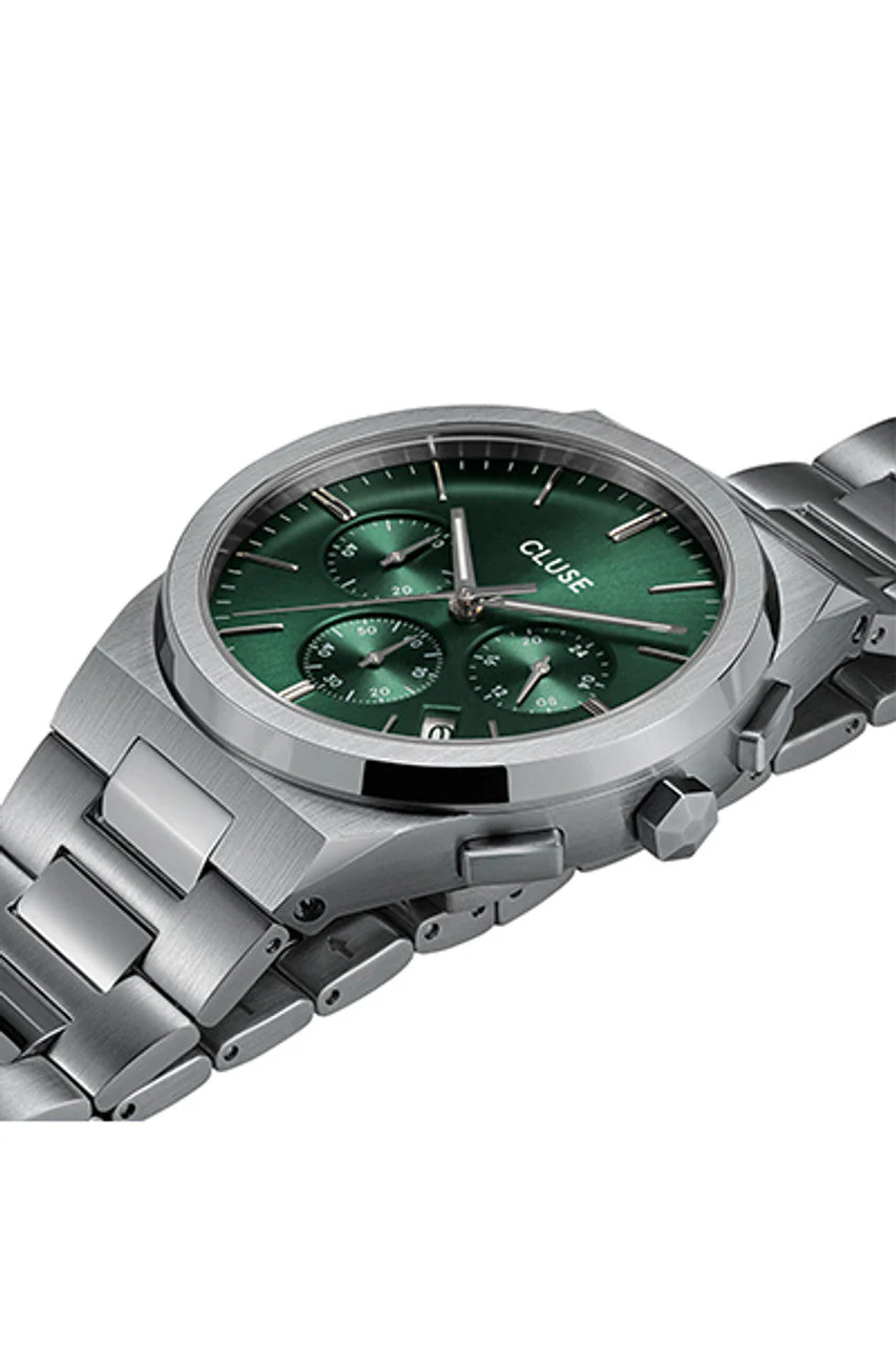No need to choose between sport or style when one watch works for both. The Vigoureux Chronograph is CLUSE’s take on a luxury sports watch: minimalist & ultra thin, but also masculine & bold. A conversation starter “par excellence” with its green chronograph dial, integrated stainless steel bracelet with invisible butterfly clasp, and its perfectly brushed & polished stainless steel case. Powered by a high performance Miyota quartz movement, this watch will be the perfect companion for your more ambitious days and nights. Water resistance: 5 ATM.