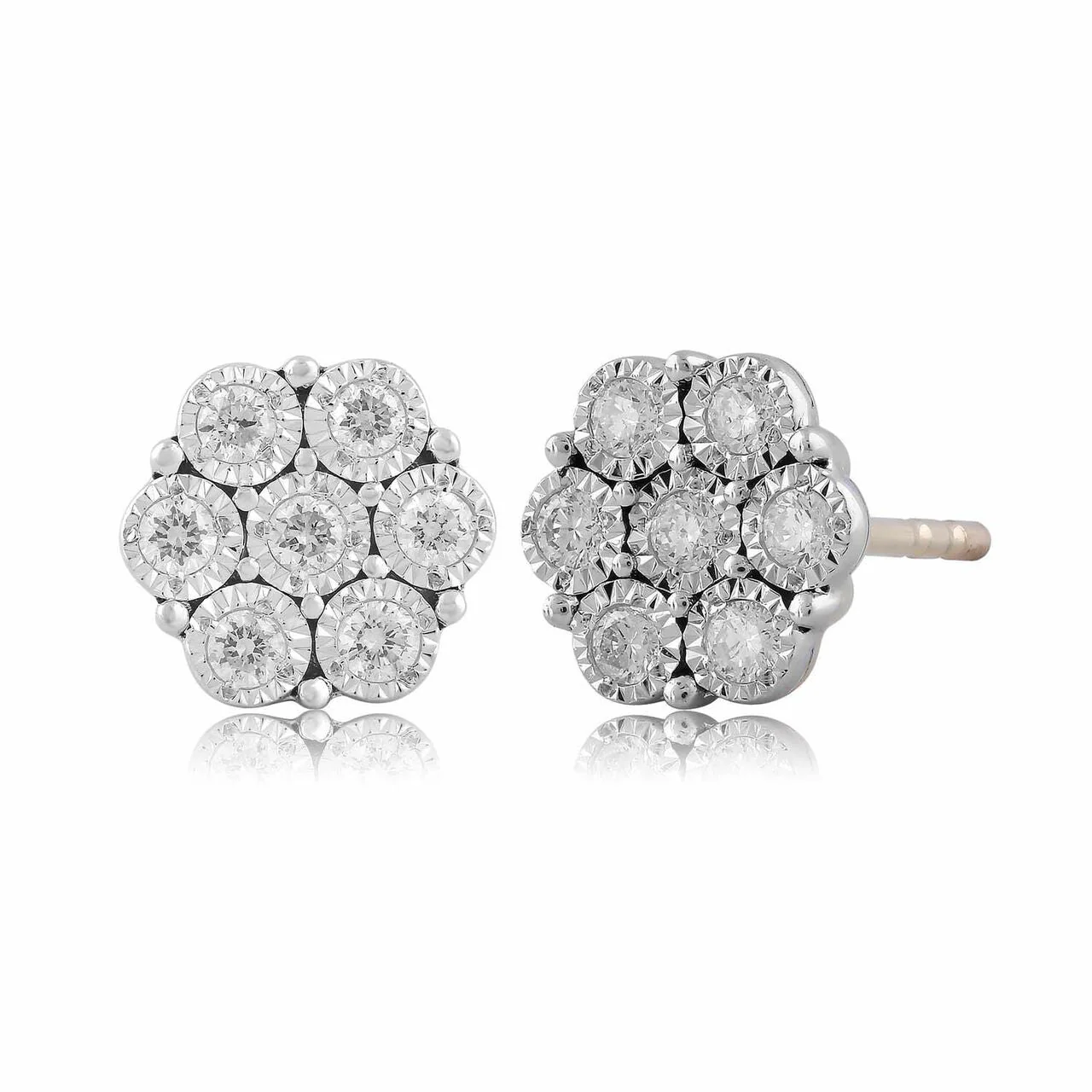 Simply Irresistble, this stunning pair of diamond stud earrings in yellow gold is made up of 14 diamonds forming an elegant hexagon shape.