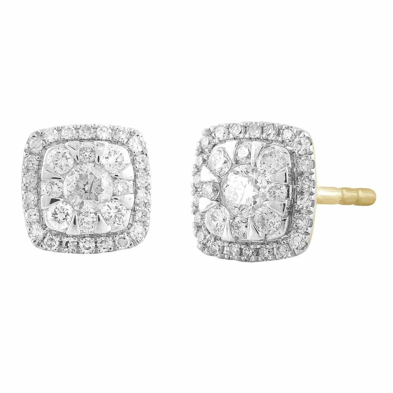 Simply Irresistble, this stunning pair of diamond stud earrings in yellow gold is made up of 62 diamonds forming an elegant square shape.