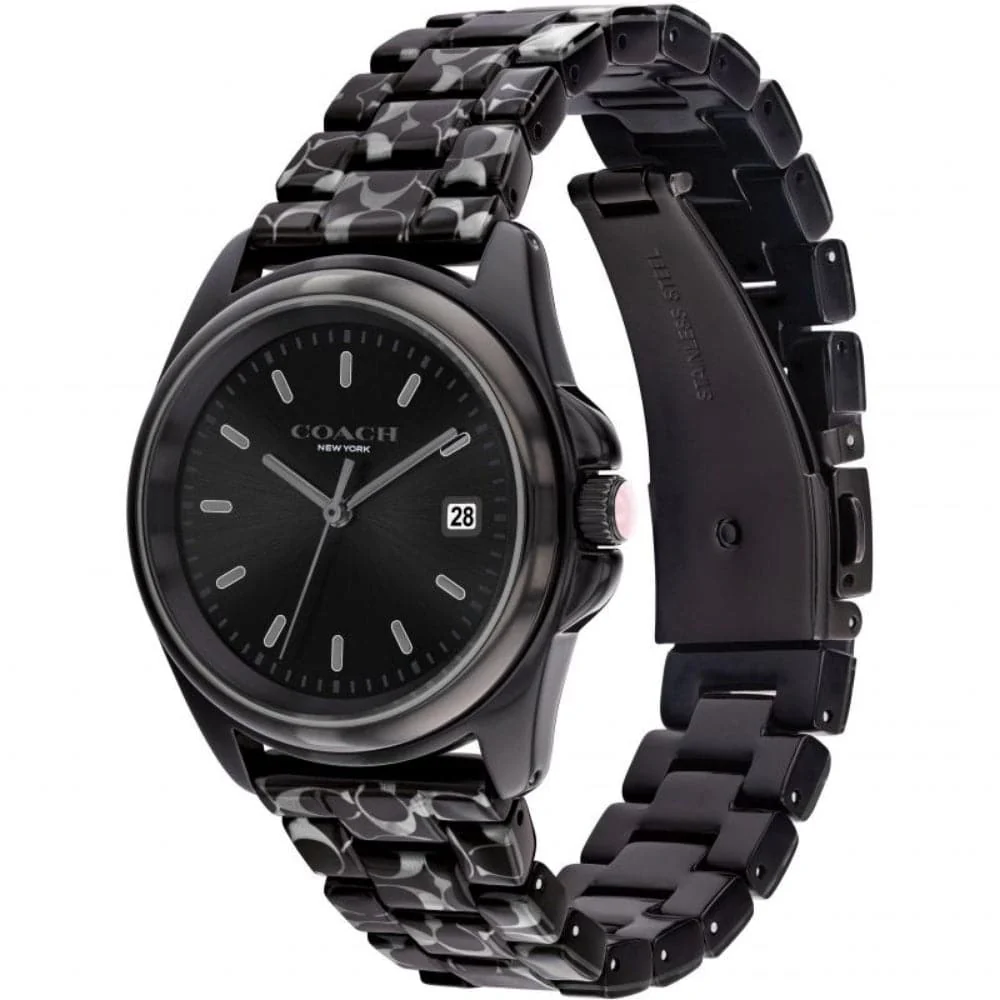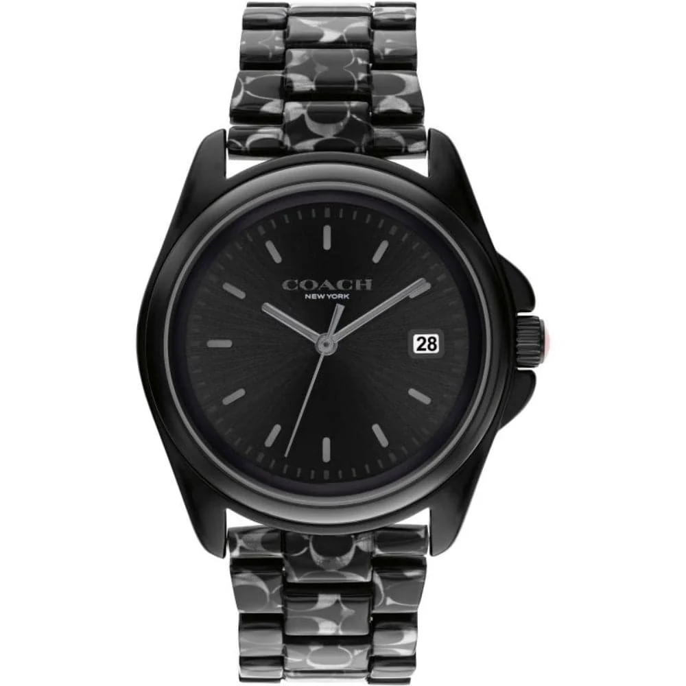 The epitome of refined sophistication, Greyson is a polished, go-everywhere timepiece. Finished with a versatile, durable strap crafted of custom-designed acetate featuring the iconic Coach Signature, this black ionic 36mm plated design has a black sunray dial detailed with stick markers and a date window at 3 o’clock.