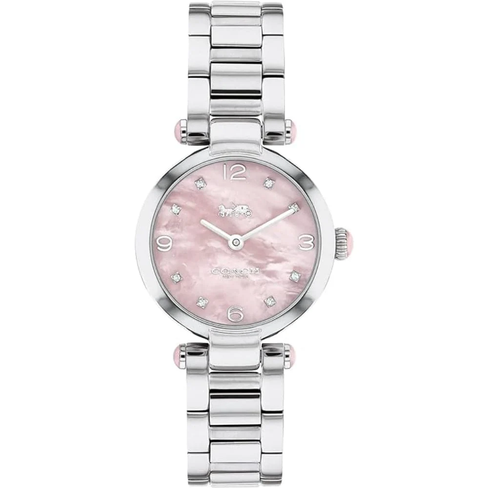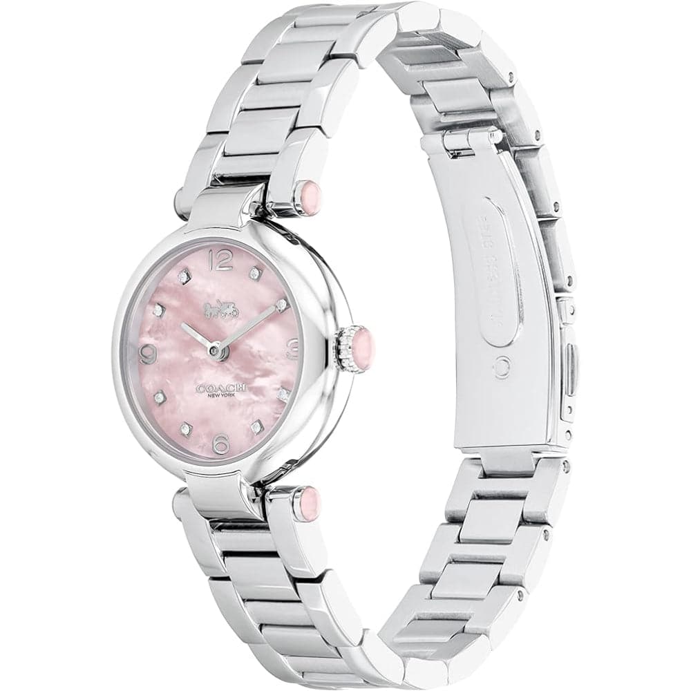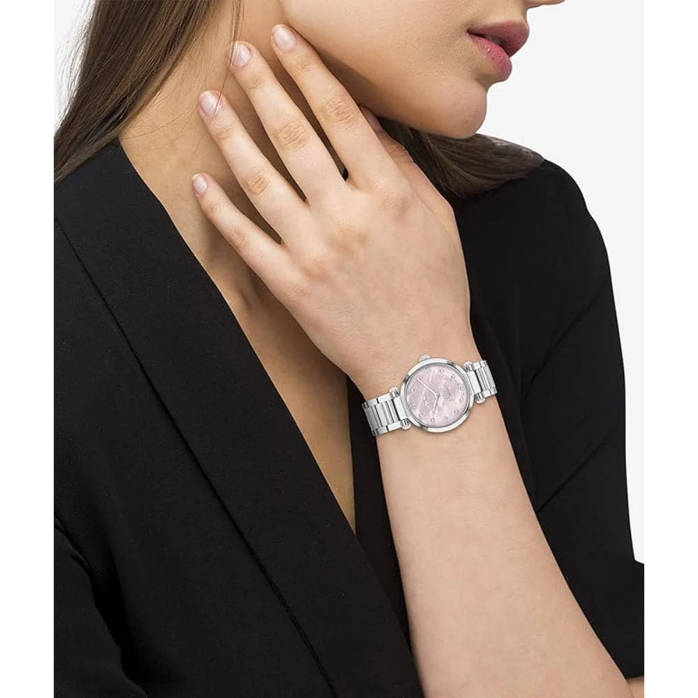 Coach New York Cary Pink Dial Silver Stainless Steel Strap Women Watch 14000079