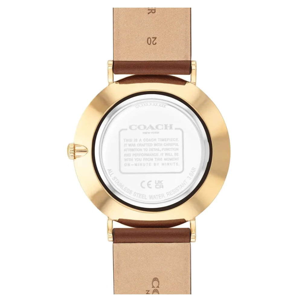 Named for the stately street in New York’s West Village, the Charles is a minimalist design perfect for every day. Finished with a saddle leather strap, this gold tone design features a navy dial detailed with the Coach Badge for heritage style.