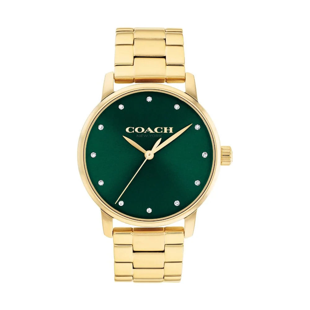 Coach Grand, women’s 36mm gold stainless steel case, green dial, gold stainless steel bracelet