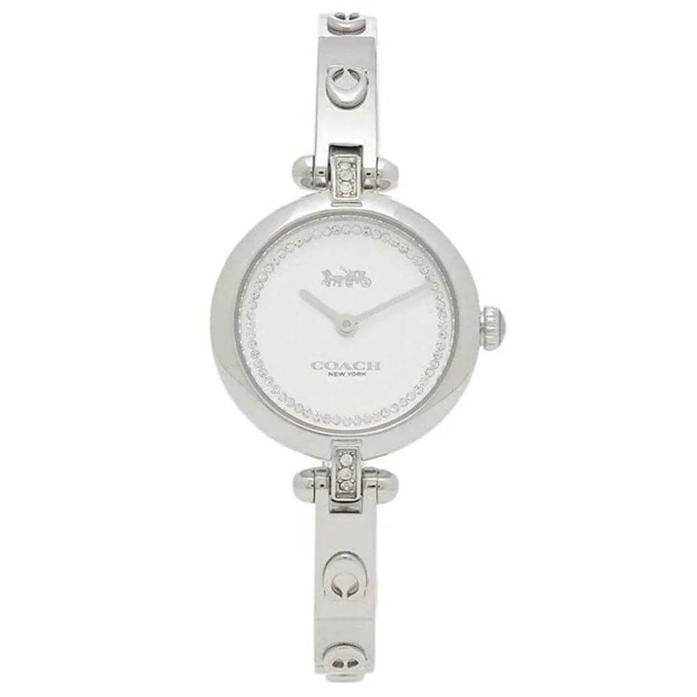 Timeless and elegant, the Cary watch is a sophisticated style perfect for day or night. Accented with sparking crystals and Coach Signature hardware, the sleek stainless steel bangle design features a 26mm powder white dial detailed with the iconic Coach Horse and Carriage motif for a heritage touch. It’s finished with a self-sizing clasp to fit most wrists. With a mineral crystal and quartz movement, this watch is water-resistant to 99 feet.