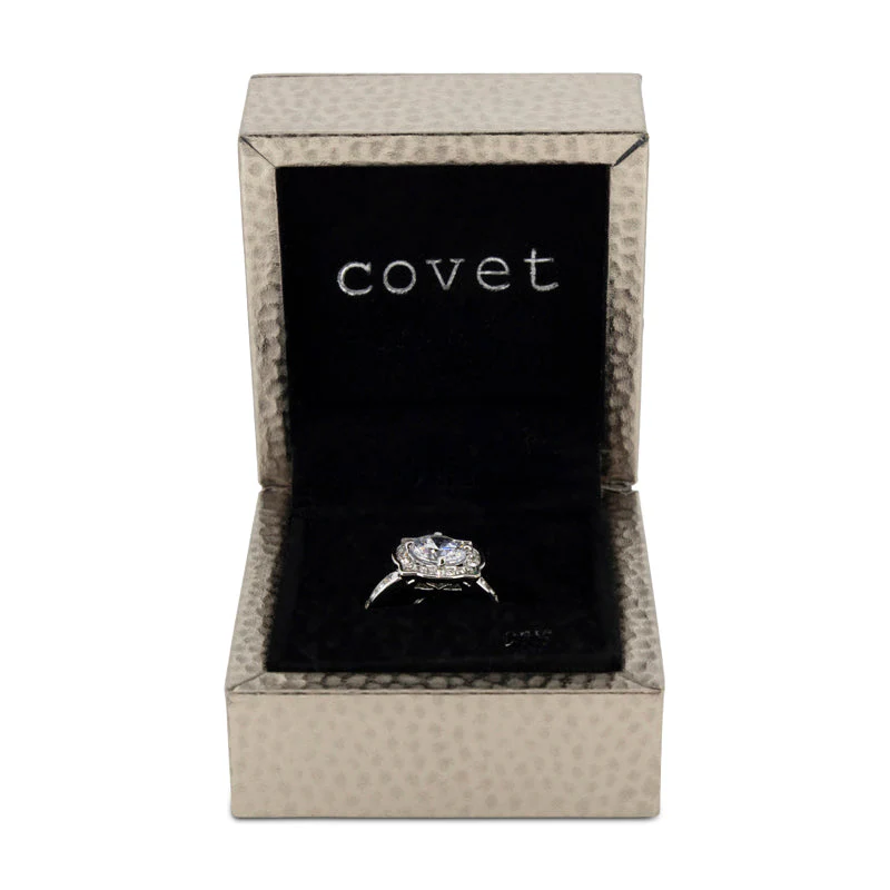 Covet Rhodium Plated Cubic Zirconia Fancy Ring – Size 6