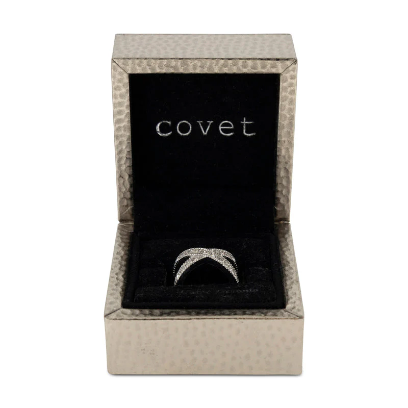 Step into elegance with the Covet Rhodium Plated Cubic Zirconia Pave Band Ring size 5, a perfect addition to your jewellery collection. Designed to captivate, this exquisite band ring is crafted with a delicate rhodium plating, offering a lustrous finish that complements any look. The band, encrusted with sparkling cubic zirconia stones, provides a stunning sparkle reminiscent of real diamonds, ensuring you stand out on every occasion. Perfect for women who appreciate quality and style, ideal for everyday wear or special events.