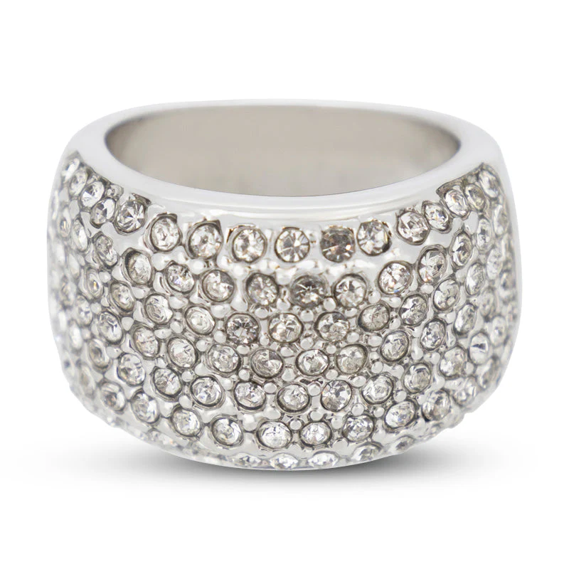 Covet Rhodium Plated Pave Crystal Band Silver Ring – Size 6