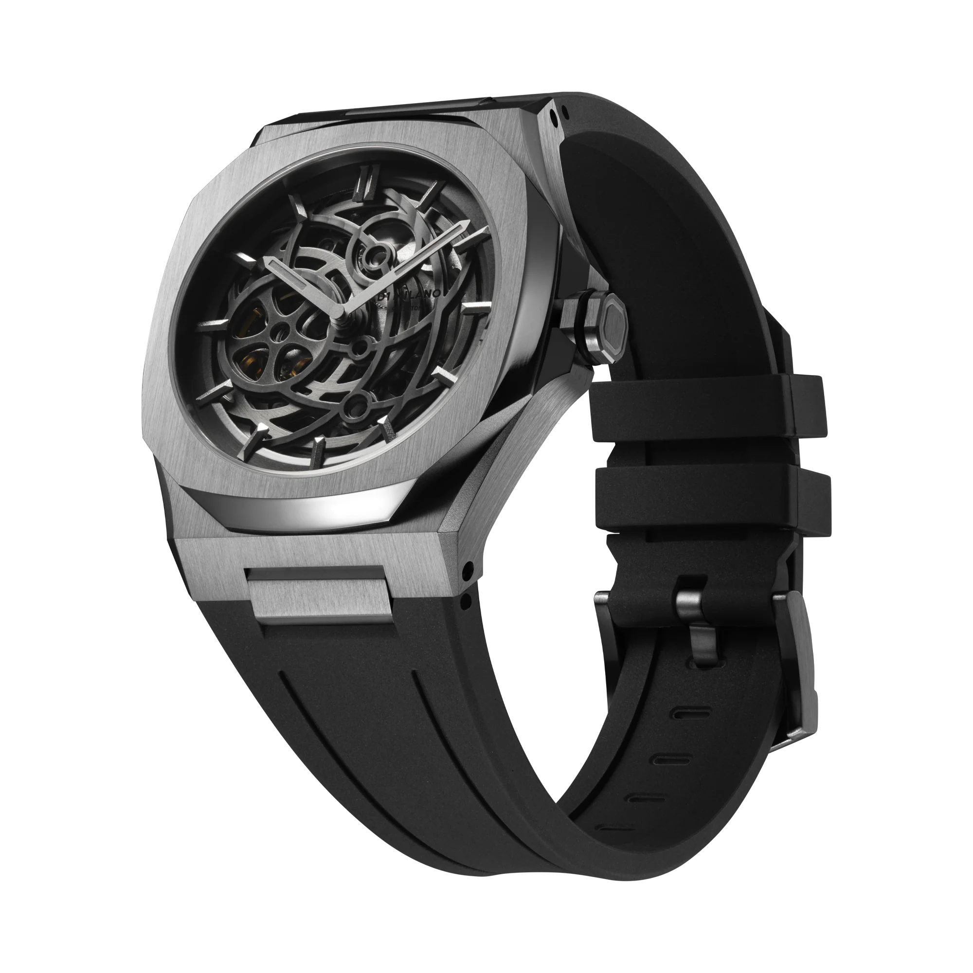 Experience a mechanical marvel reimagined for the sporty and bold individuals. The D1 Milano Gun Metal Automatic Watch SKRJ11 showcases a striking new see-through skeleton dial that allows you to admire its intricate 24-jewel self-winding movement.