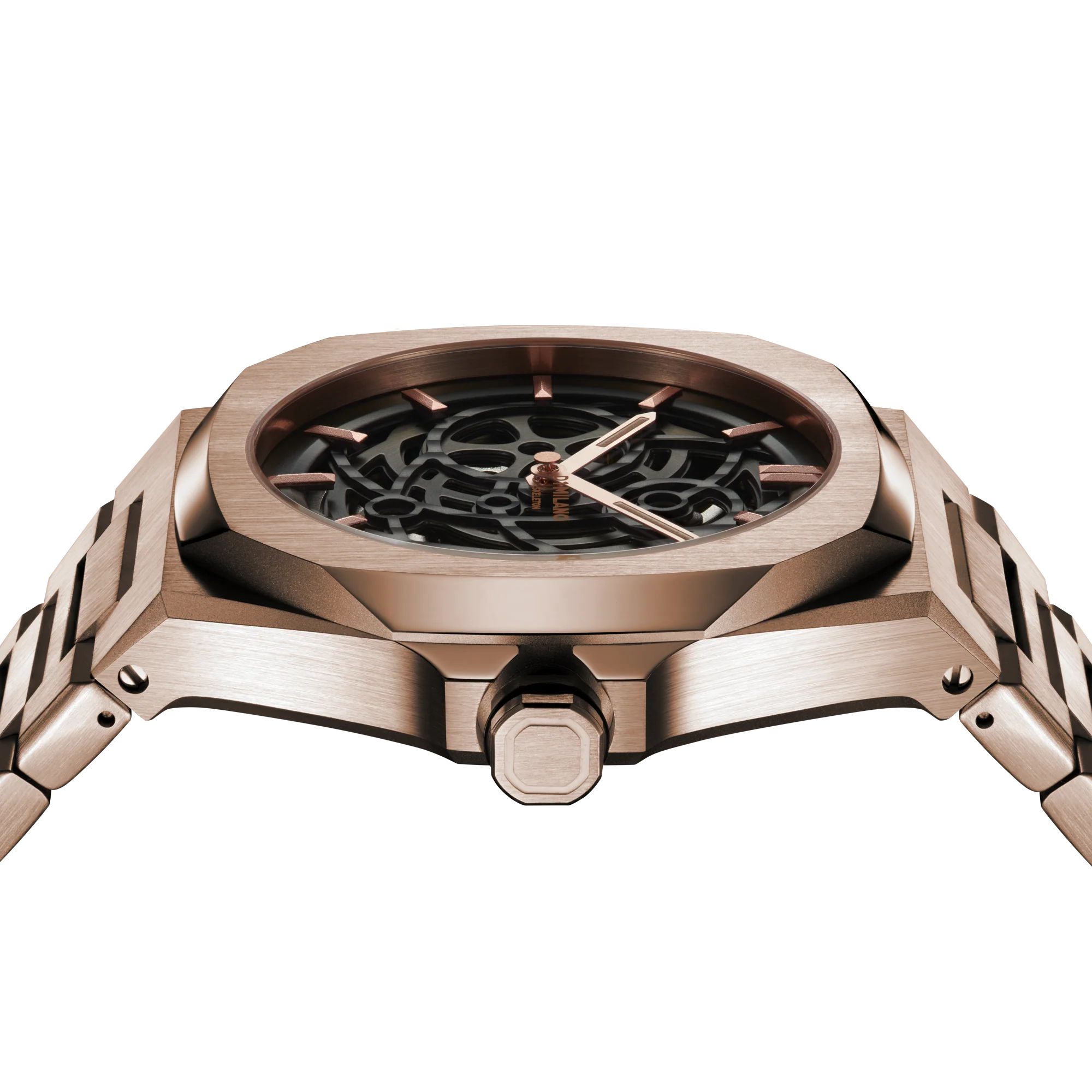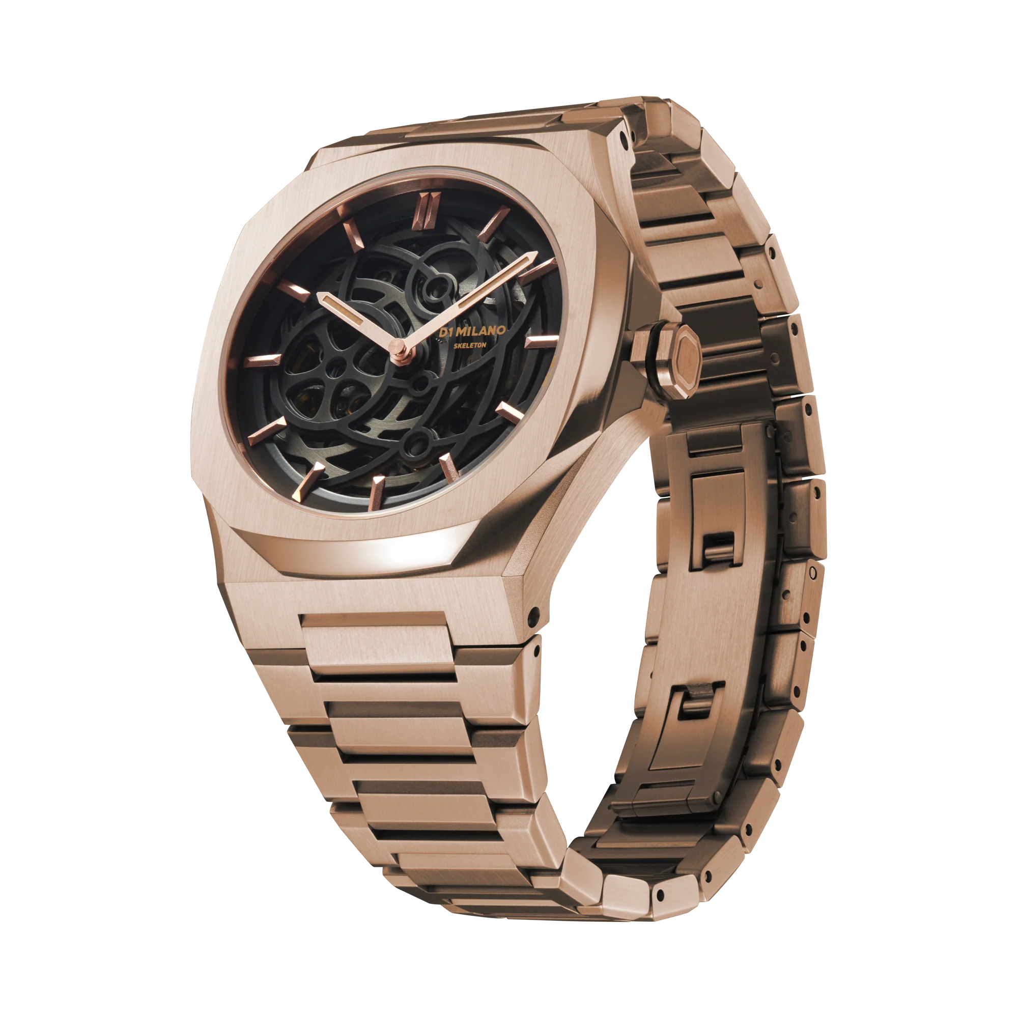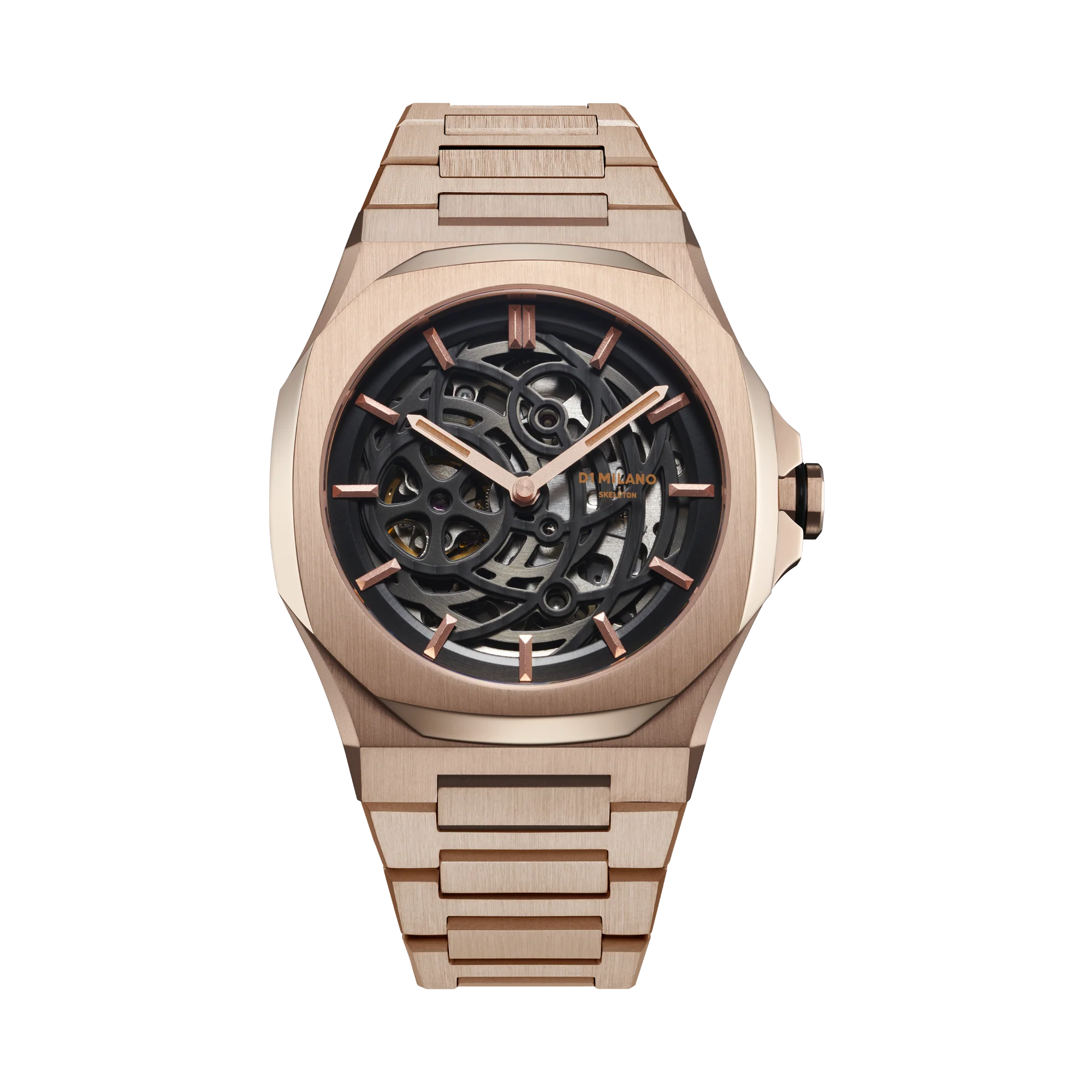 Elevate your style game with the D1 Milano Rose Gold Skeleton Automatic Watch, a bold statement piece that combines cutting-edge design with impeccable craftsmanship.