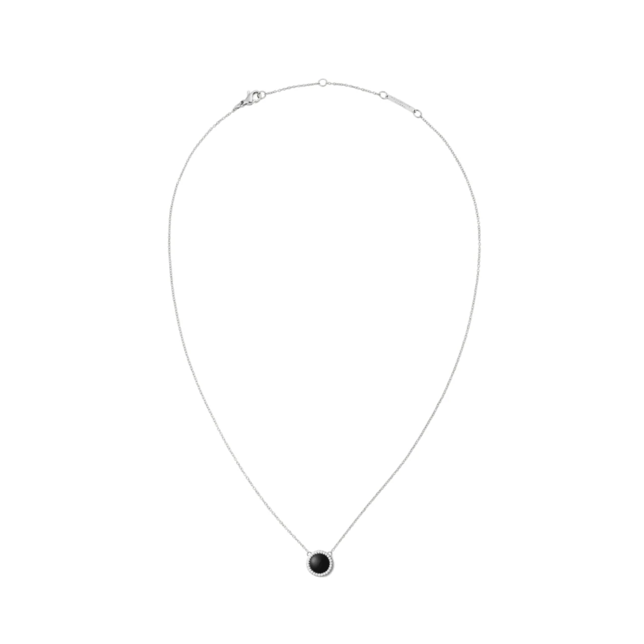 Crafted with high-quality materials, this exquisite necklace showcases the brand’s dedication to fine craftsmanship. The lustrous silver setting enhances the deep, mysterious beauty of the black agathe stone, making it a versatile accessory that pairs effortlessly with any outfit. The delicate chain ensures a comfortable fit, allowing you to wear it throughout the day without any discomfort. Its minimalist yet sophisticated design makes it an ideal choice for those who appreciate understated luxury.