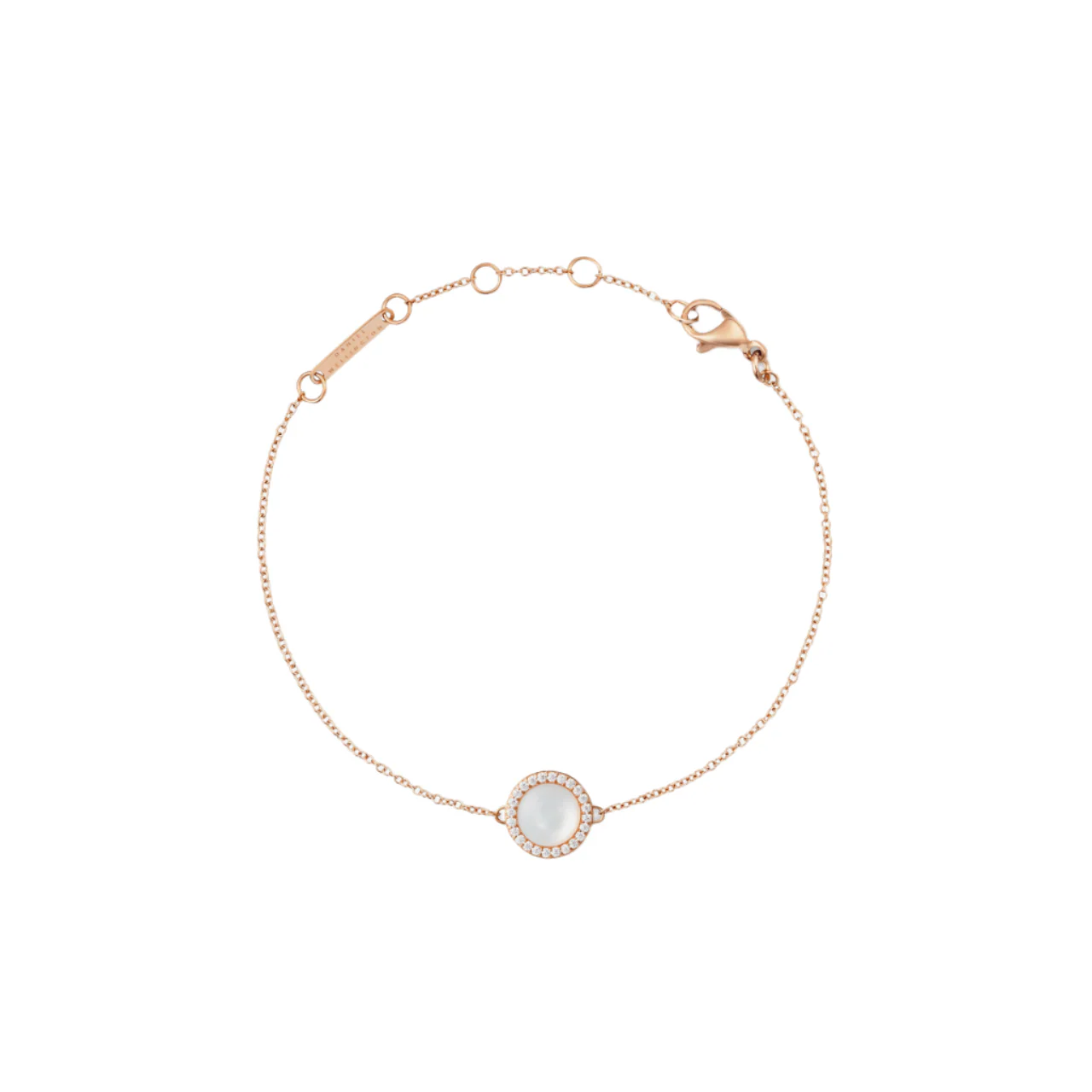 Every detail of this exquisite bracelet has been meticulously crafted to achieve a perfect balance of luxury and minimalism. The rose gold-plated stainless steel construction ensures durability while maintaining a lightweight feel for comfortable everyday wear. The subtle shimmer of the mother-of-pearl accent captures the light beautifully, creating an understated yet captivating effect. Designed to be versatile, this bracelet is an ideal companion for any occasion, from elegant evenings to daytime chic.