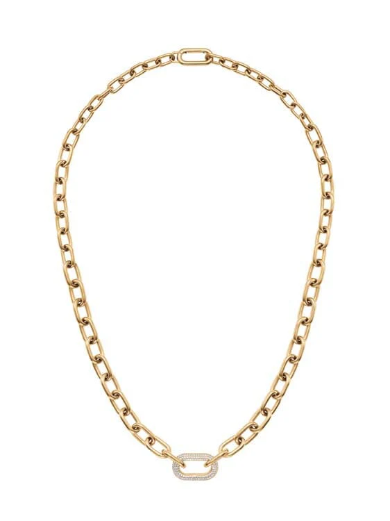 A mix of industrial elements and refined crystal details take this gold link necklace way beyond your basic chain. Wear it with the rest of the Crystal Link collection or alone as a statement piece—this chunky chain is a stunner either way.