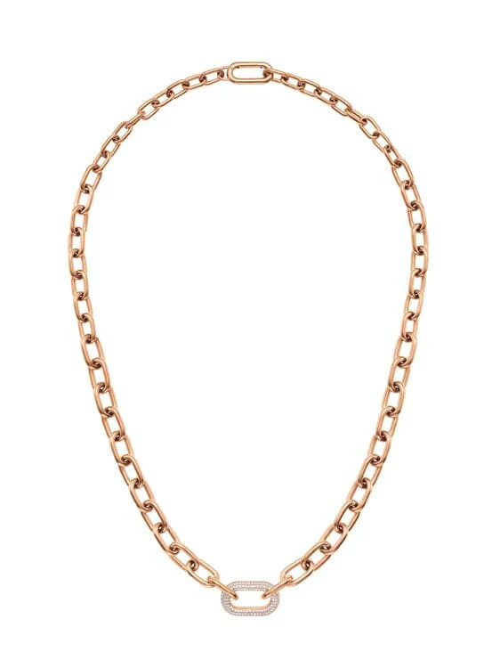 A mix of industrial elements and refined crystal details take this rose gold link necklace way beyond your basic chain. Wear it with the rest of the Crystal Link collection or alone as a statement piece—this chunky chain is a stunner either way.