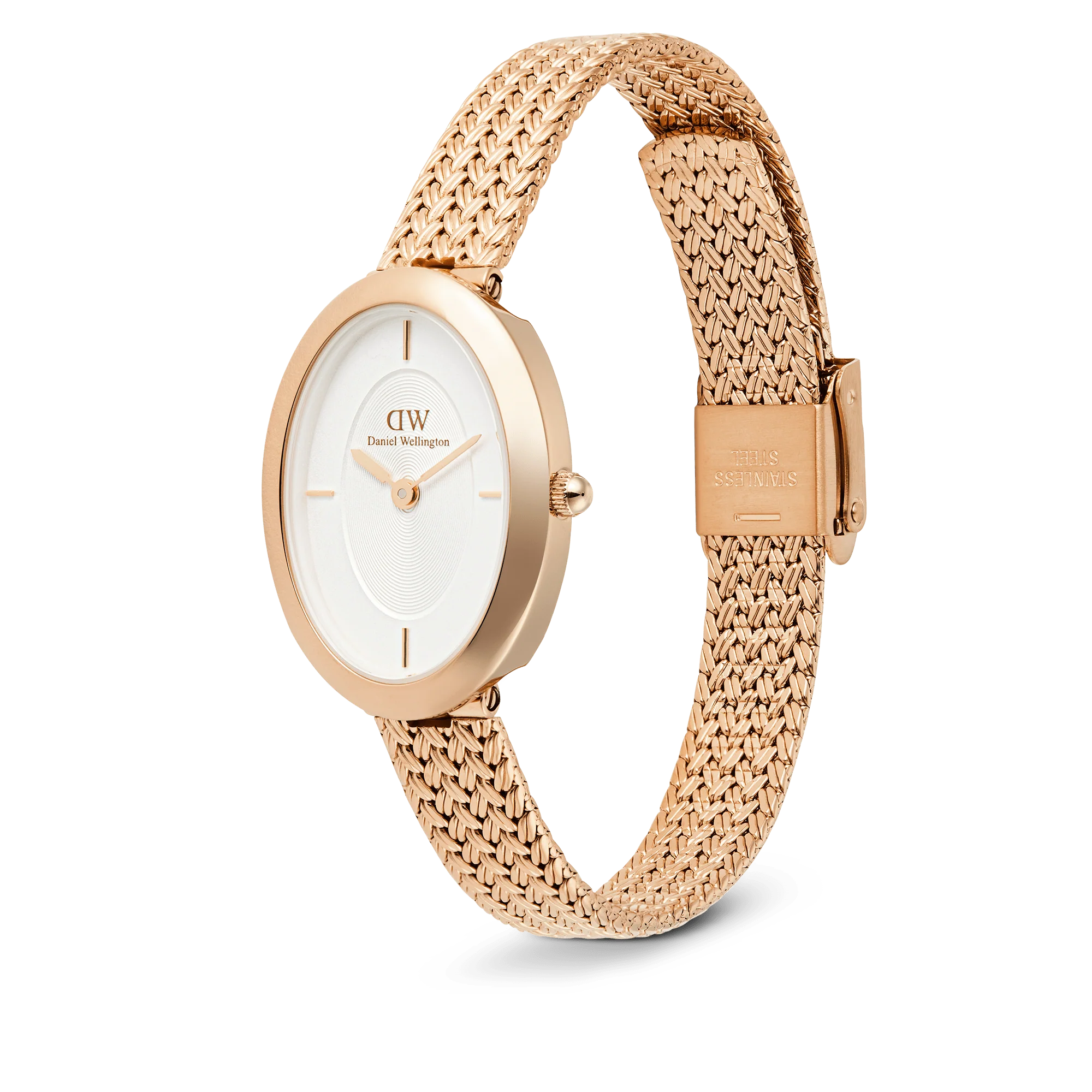 The Daniel Wellington Juliette Braided Mesh White Sunray Rose Gold watch embodies modern sophistication with a sleek oval design and a narrow, refined case. Featuring a unique braided mesh strap, this women’s watch blends vintage elegance with a contemporary touch, seamlessly connecting to the case for a streamlined silhouette. The rose gold finish enhances its graceful aesthetic, while the white sunray dial creates a luminous, timeless appeal. Impeccable craftsmanship and elegant details make this timepiece a statement of effortless style, perfect for elevating any occasion.