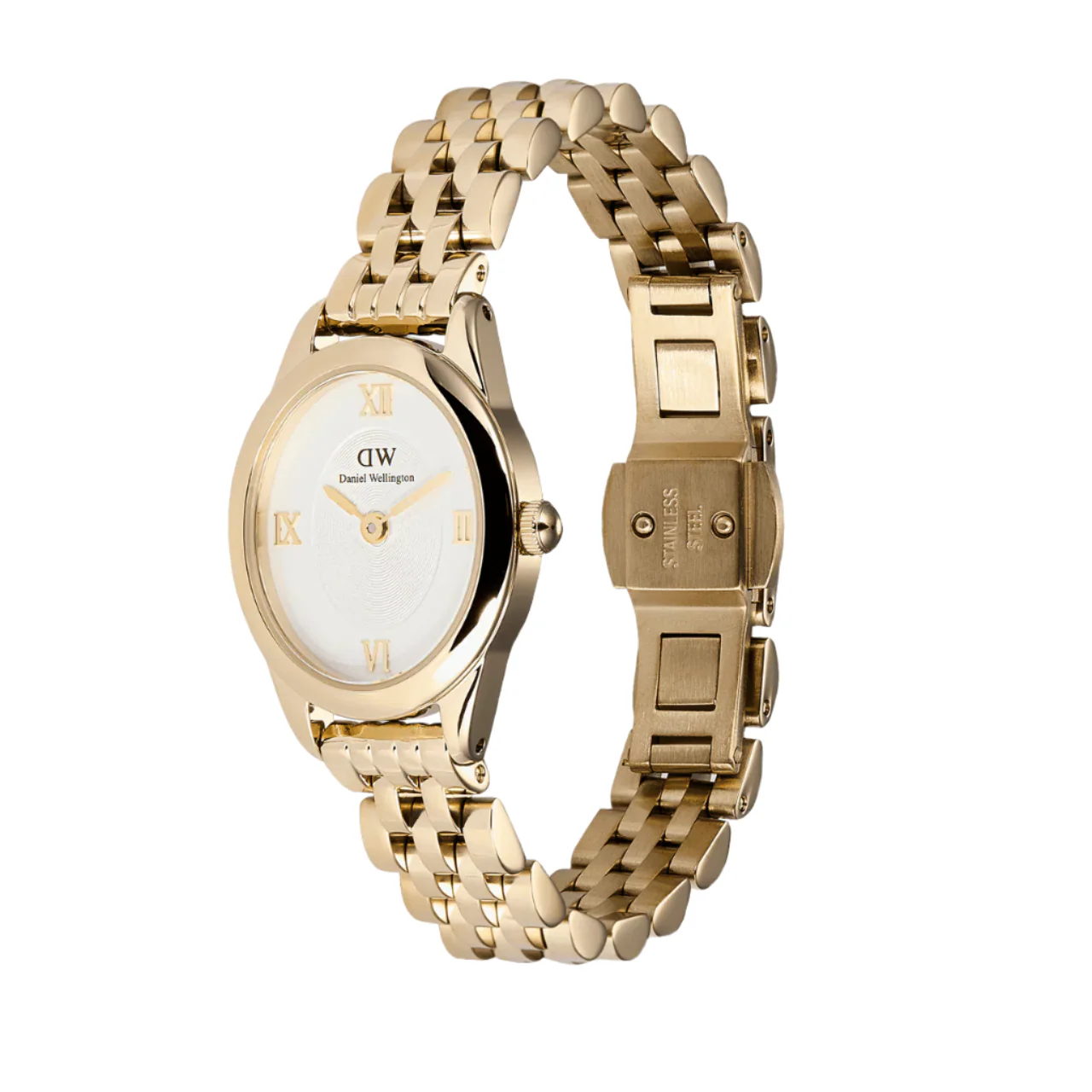 Beyond its captivating design, the Daniel Wellington Ophelia Mini Beans Link White Dial Watch DW00100803 boasts exceptional craftsmanship and reliable performance. The precise quartz movement ensures accurate timekeeping, allowing you to stay punctual while making a style statement. Its water-resistant construction adds a layer of practicality, offering protection against accidental splashes and everyday wear. This watch is not just a fashion accessory; it is a symbol of elegance, confidence, and timeless beauty.