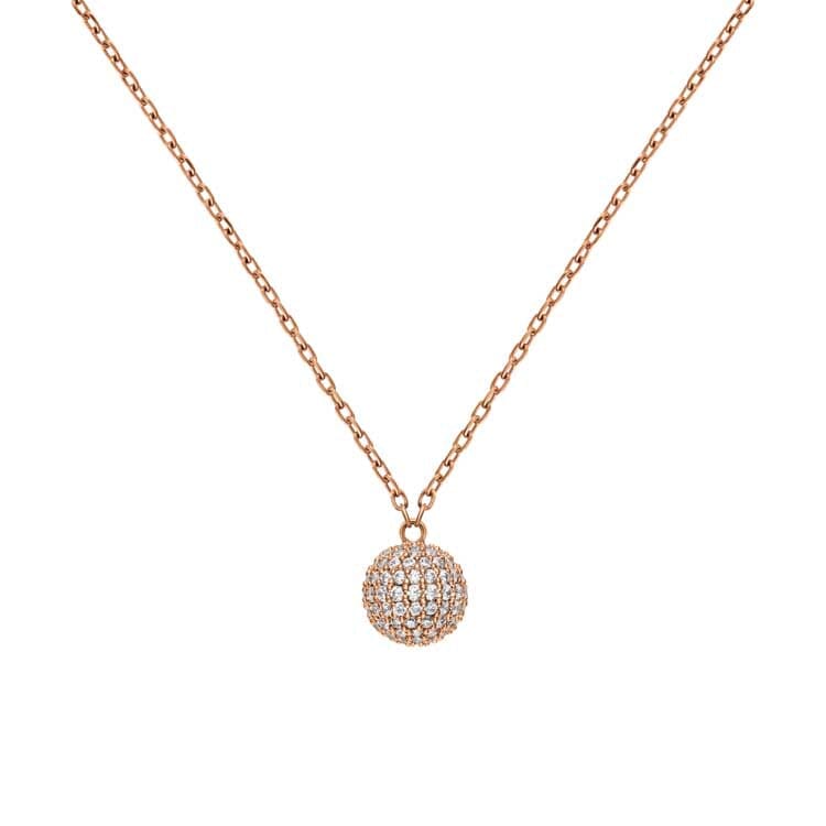 Closely arranged, carefully set crystals allow this rose gold pendant necklace to capture the light from all angles, creating a sparkling effect found across the entire Pavé collection. The pendant is fixed, so the necklace’s clasp and sizing rings won’t gather.
