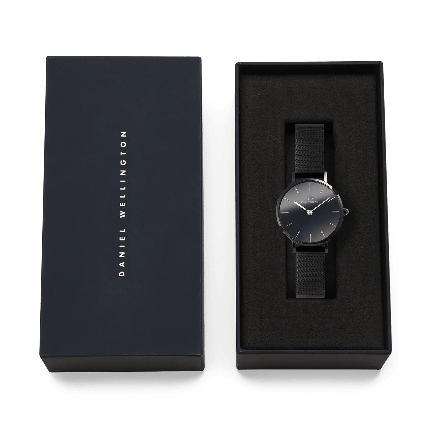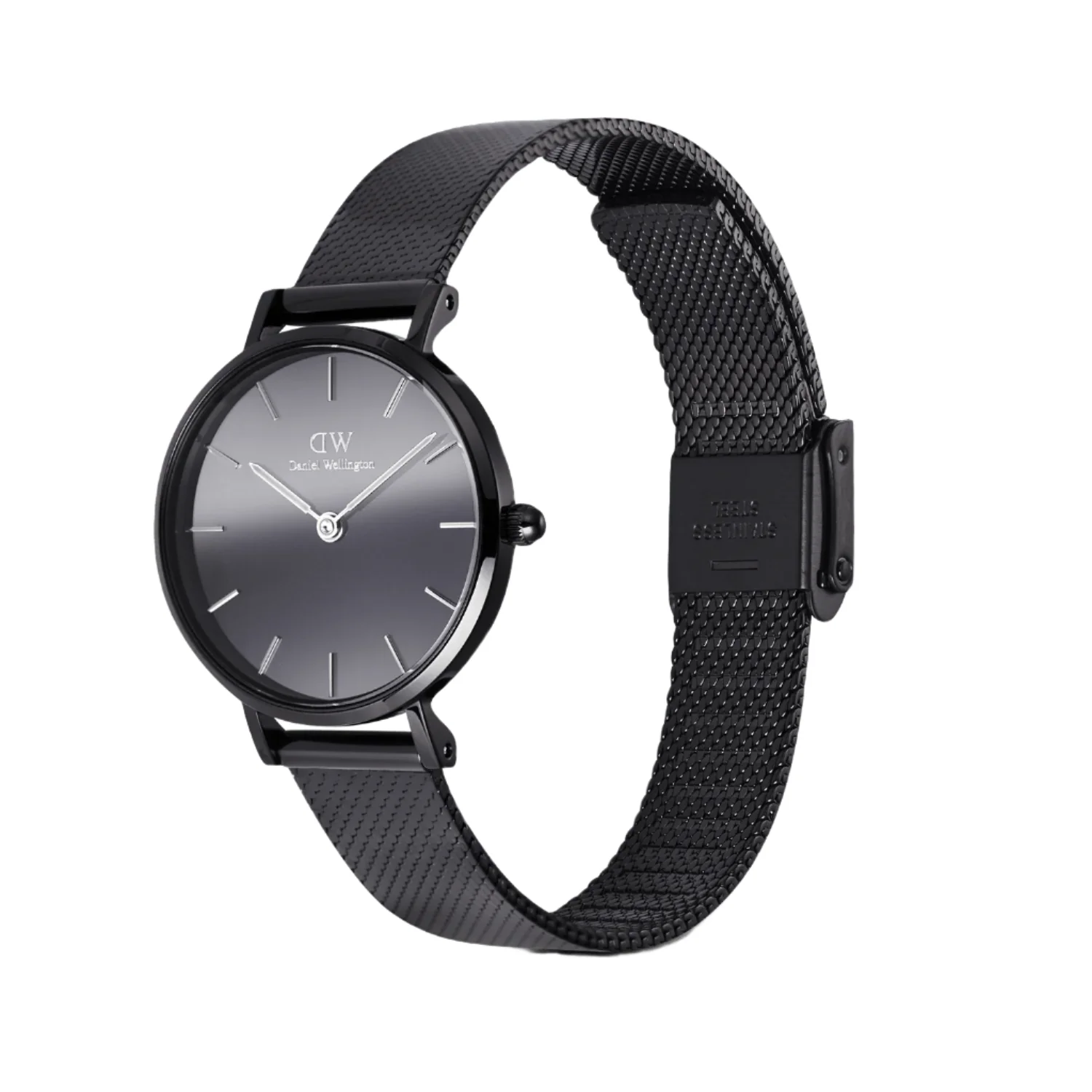 Refined and minimal, the Daniel Wellington Petite Mirror Reflection Black Dial Watch DW00100798 brings understated luxury to any ensemble. With a sleek 28mm stainless steel case and a bold black dial that subtly catches the light, this women’s watch offers a balance of elegance and modern edge. The polished black mesh strap provides a comfortable, adjustable fit while enhancing the monochrome aesthetic. Crafted with Japanese quartz movement for precise timekeeping and protected by durable mineral crystal glass, it blends style and reliability seamlessly. Water resistance up to 3 ATM means it’s suited for daily wear, making it a standout in contemporary women’s watches.