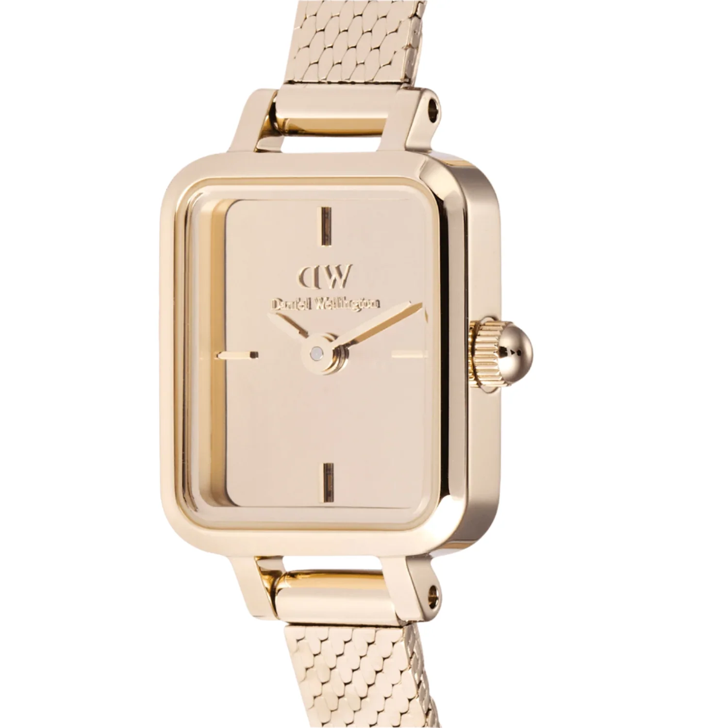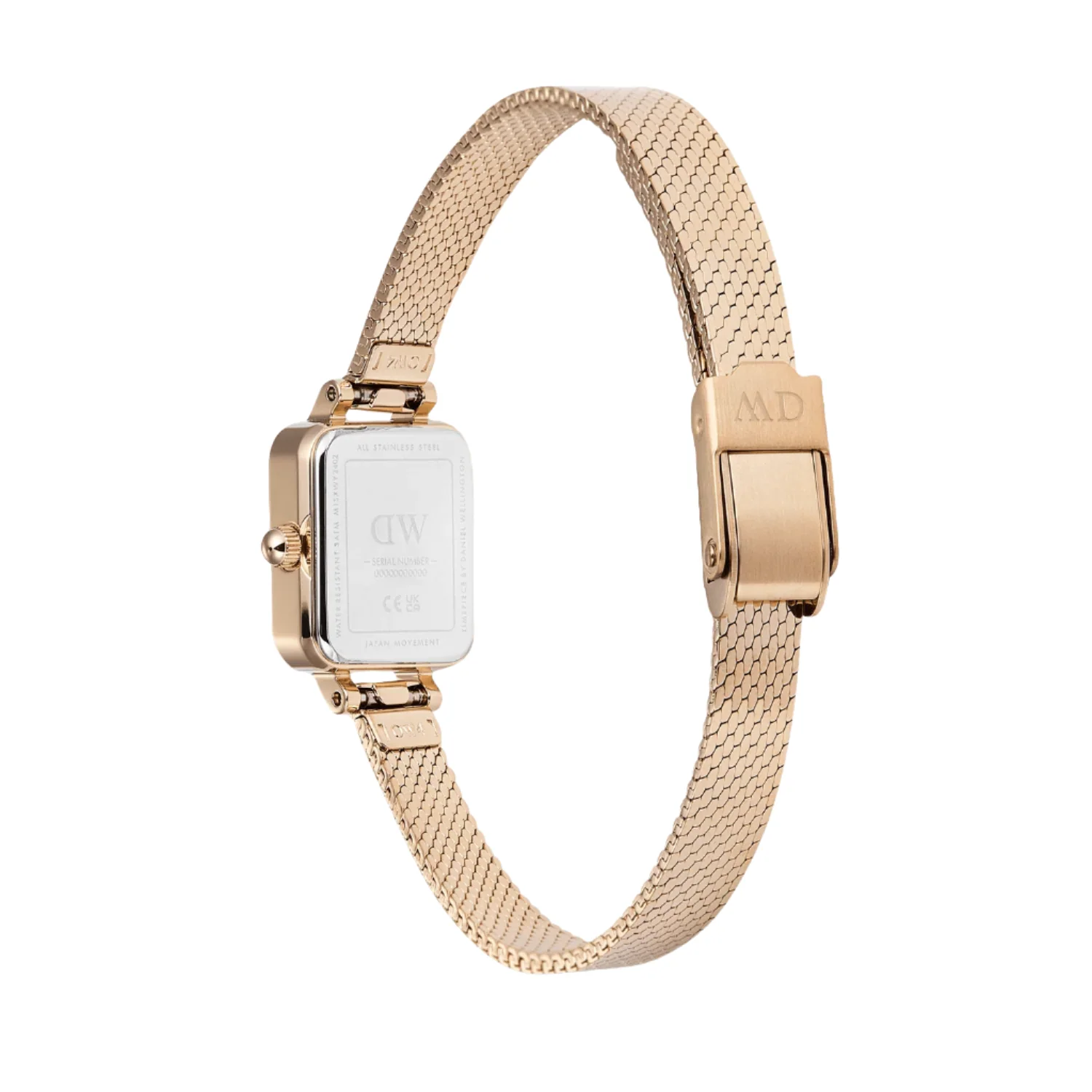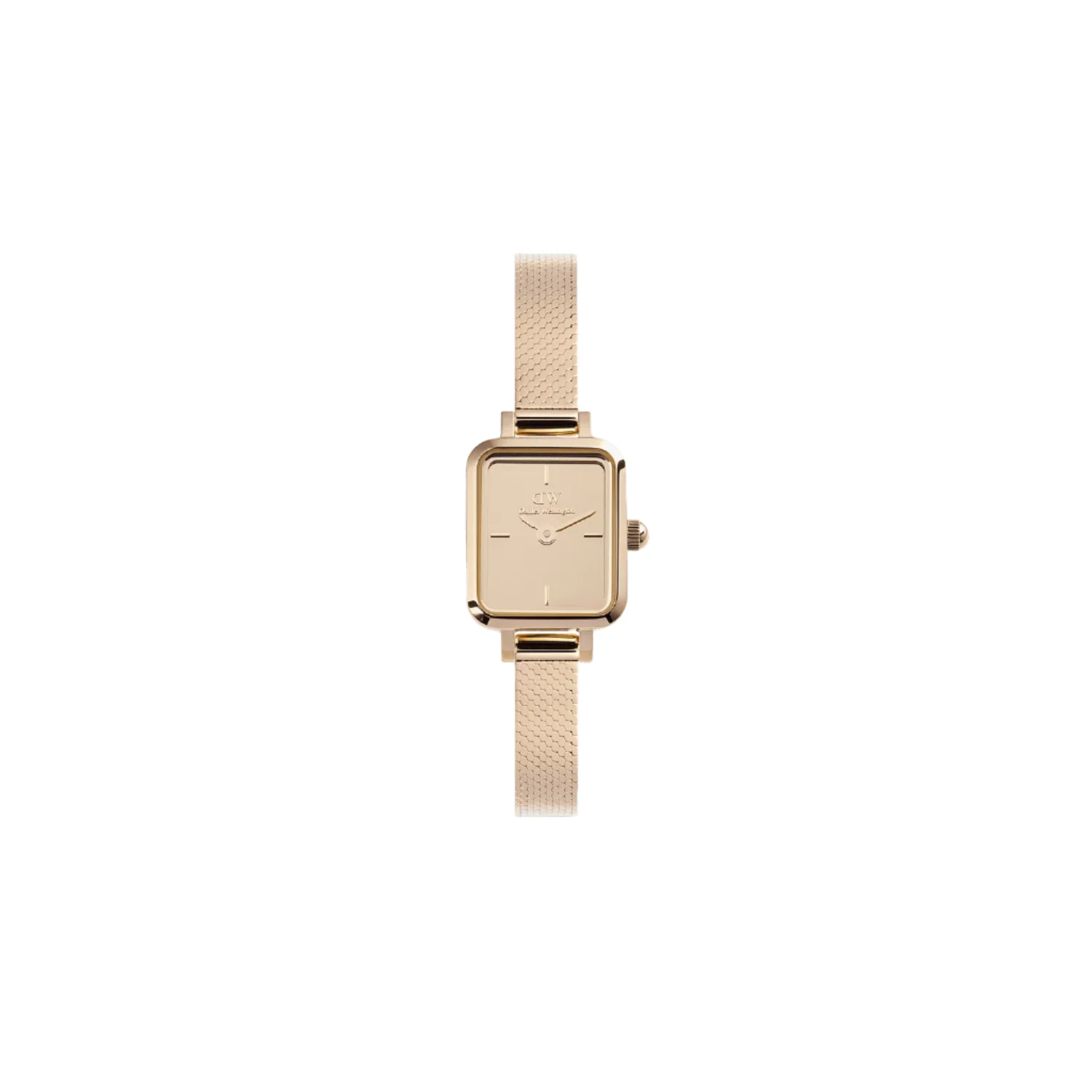 The Daniel Wellington Quadro Mini Mirror Reflection Rose Gold Dial Watch DW00100799 is a stunning example of modern luxury and refined sophistication, perfect for women who appreciate timeless elegance. Featuring a polished stainless steel case plated in warm rose gold, this exquisite timepiece showcases a captivating mirror-like dial that enhances its sleek rectangular design. The minimalist aesthetic is complemented by slim hands, ensuring a highly readable display. A durable rose gold mesh strap offers comfort and a secure fit, making it ideal for daily wear or special occasions. Powered by precise quartz movement, this watch also boasts water resistance up to 30 meters, ensuring it withstands everyday elements. Elevate your style with this versatile accessory, a perfect addition to any jewelry collection or a thoughtful gift for a loved one.