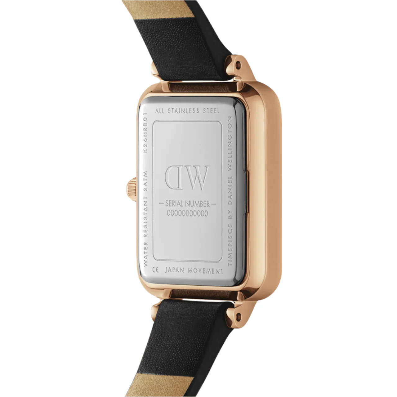 The Daniel Wellington Quadro Pressed Sheffield Black Leather Watch DW00100446 brings a refined edge to any ensemble with its unique square case and sleek green dial. Crafted from PVD-plated rose gold stainless steel and fitted with a slim 10 mm black leather strap, it strikes a perfect balance between contemporary elegance and timeless design. This women’s watch features a minimalist face protected by mineral crystal glass and powered by precise Japanese quartz movement, ideal for everyday sophistication. At just 6 mm thick and water-resistant up to 30 meters, it offers both comfort and functionality. A standout in the watches category, it’s designed for those who appreciate subtle luxury and clean craftsmanship.
