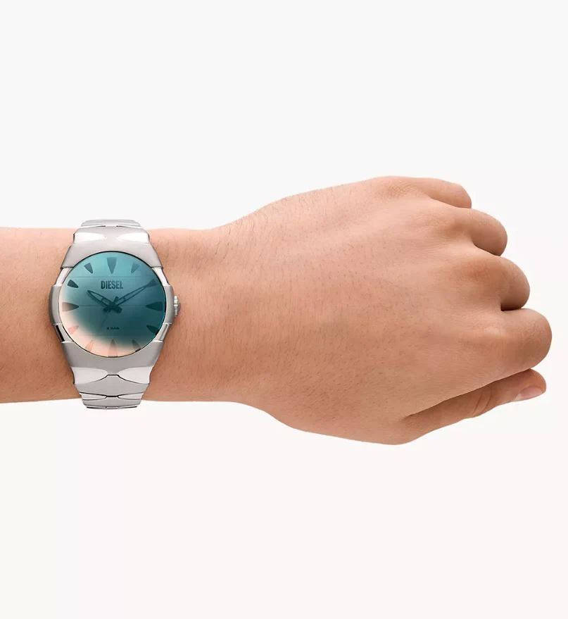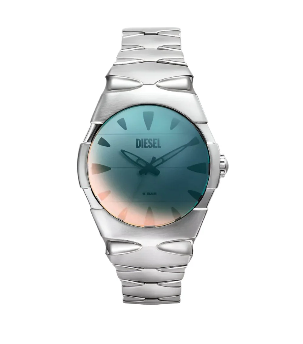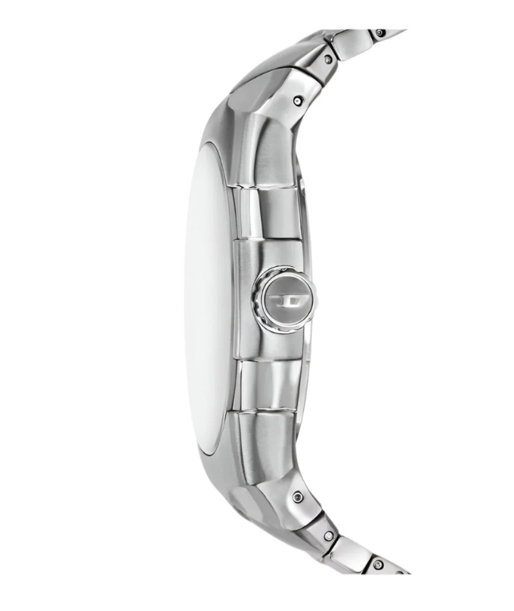 Refined yet bold, the Diesel D-Sruptor DZ2212 men’s watch defines modern sophistication with its stainless steel build and sleek silver band. The 42mm case frames a clean white dial that enhances legibility while offering a minimalist aesthetic. Crafted with a mineral crystal glass and powered by a reliable quartz three-hand movement, this timepiece blends durability with precision. The stainless steel bracelet features a distinctive sculpted design and secures comfortably with a 2-pusher foldover clasp. Water resistant up to 50 meters, it’s built to keep up with life’s demands while remaining effortlessly stylish. An elevated choice in the watches category, this piece exemplifies Diesel’s commitment to craftsmanship and contemporary edge.