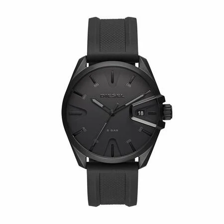 This 44mm NSBB watch features a matte black dial with stick indexes, three-hand movement and black silicone strap.