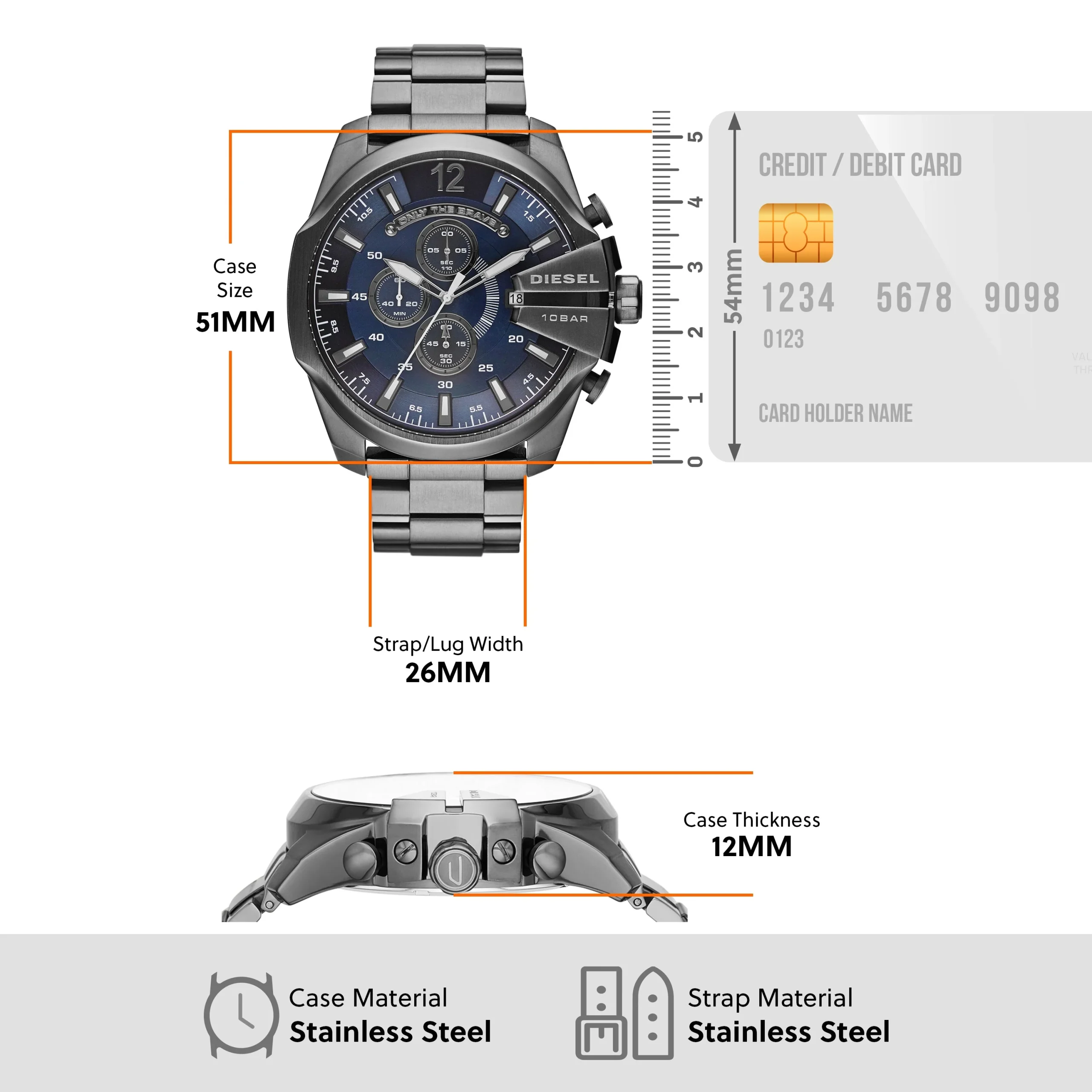 Gunmetal Stainless Steel Design: Adds a bold, contemporary edge to your look.
