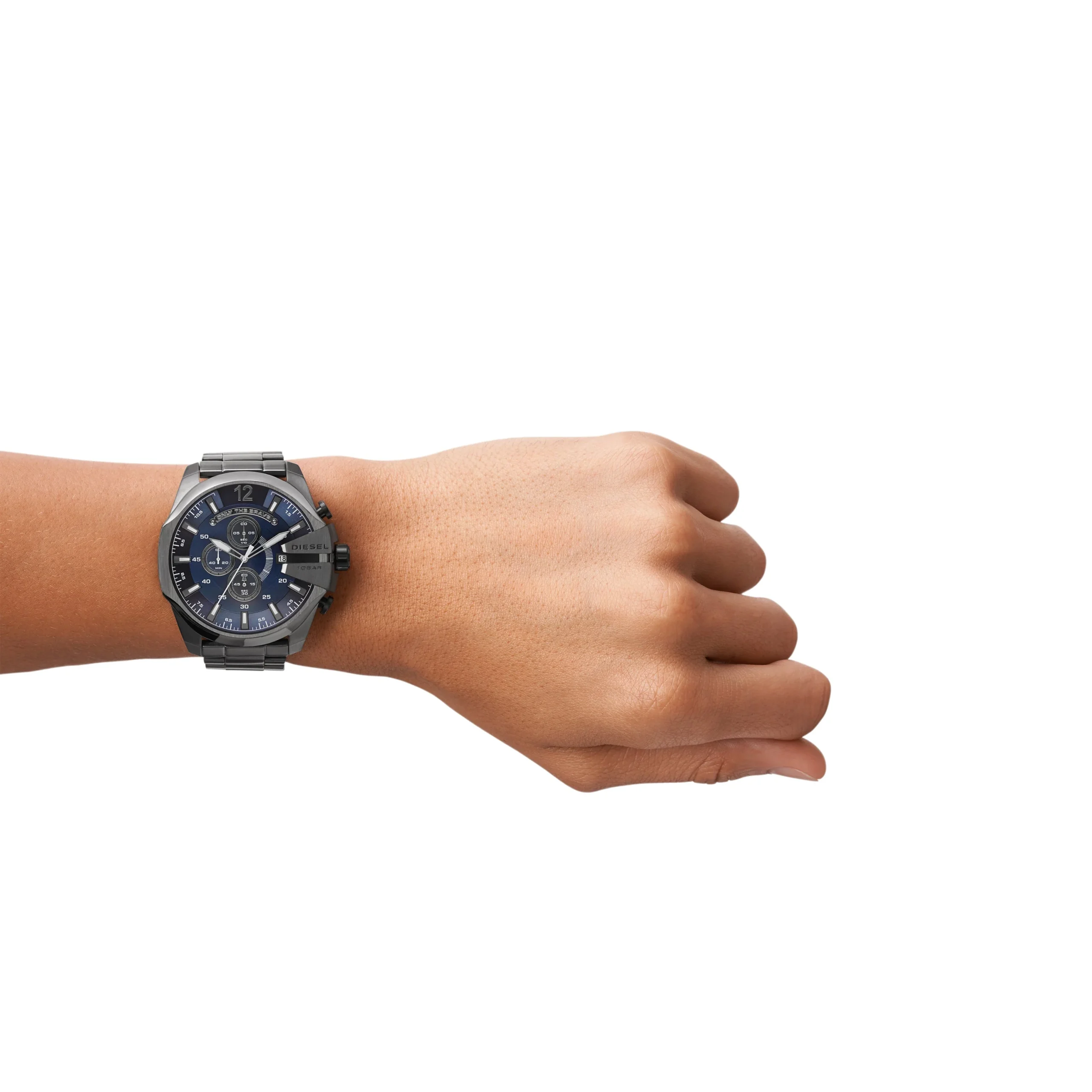 Crafted for the modern man, the Diesel Men’s Mega Chief Chronograph Gunmetal Stainless Steel Watch DZ4329 offers a sleek and sophisticated design.