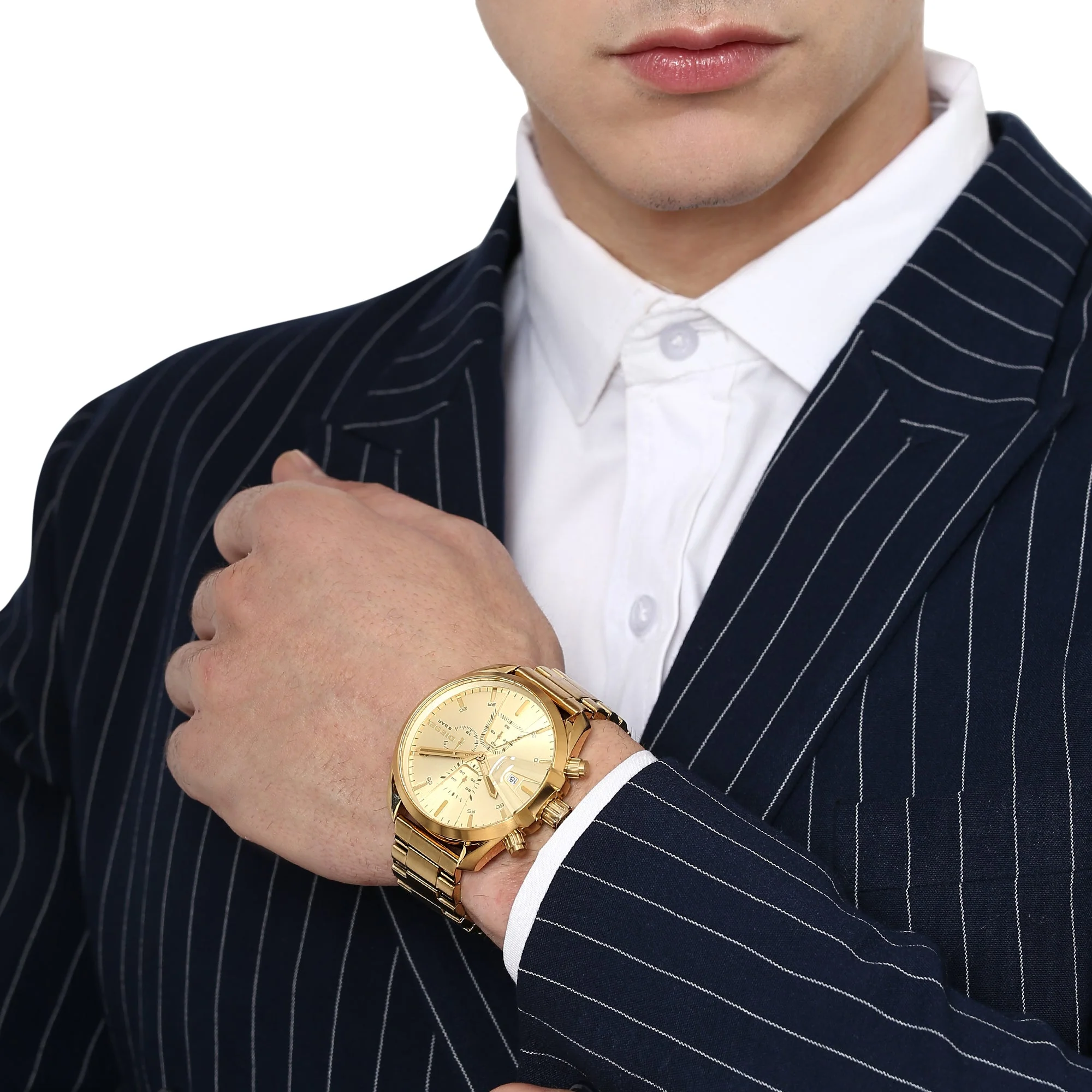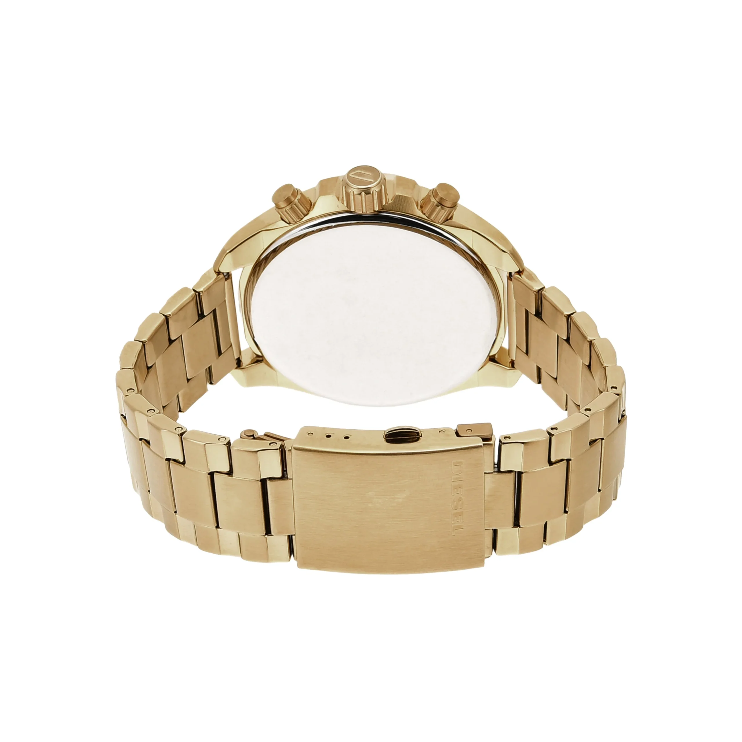 Crafted for those who appreciate bold style and refined craftsmanship, the Diesel Ms9 Chronograph All Gold Men’s Watch DZ4475 is a striking statement of modern luxury. Its 46mm round stainless steel case and matching gold-plated bracelet exude confidence, while the gold sunray dial delivers a sleek, monochromatic aesthetic. Designed with precision quartz chronograph movement and date functionality, it combines practical performance with elevated design. The linked stainless steel band and deployant clasp ensure both durability and comfort. Ideal for the fashion-forward man, this men’s watch reflects Diesel’s signature blend of innovation and iconic style in the premium watch category.