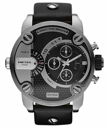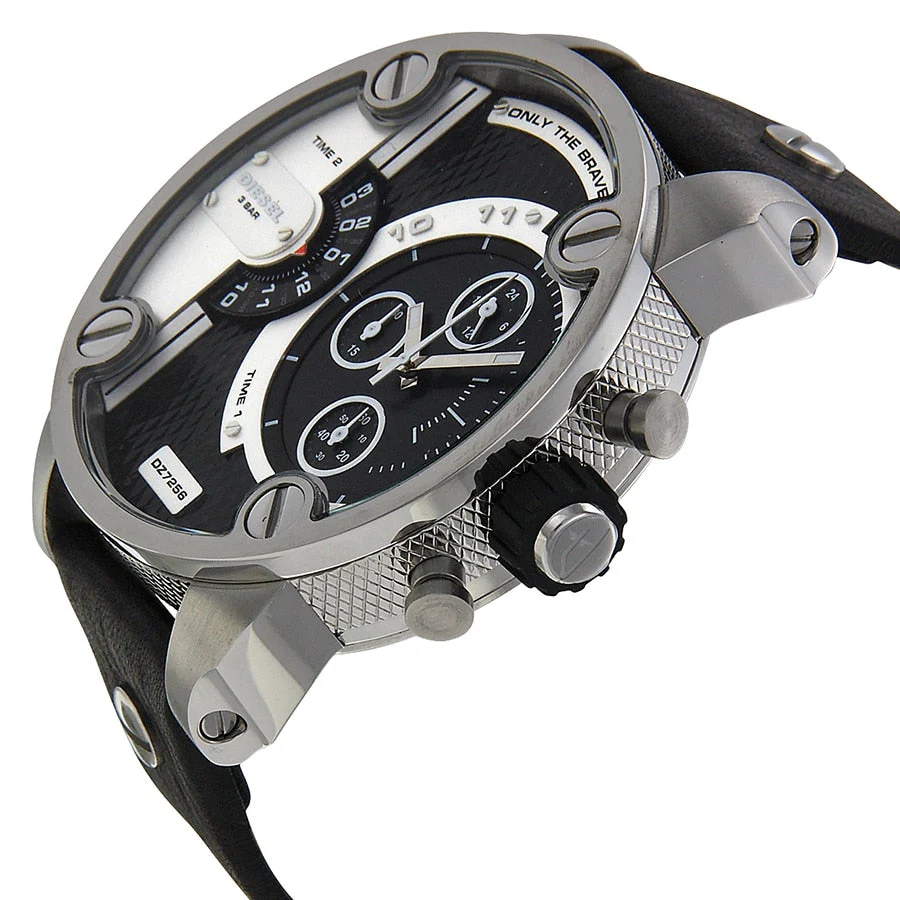 • Diesel Little Daddy Black and Grey Dial Black Leather Men’s Watch DZ7256.