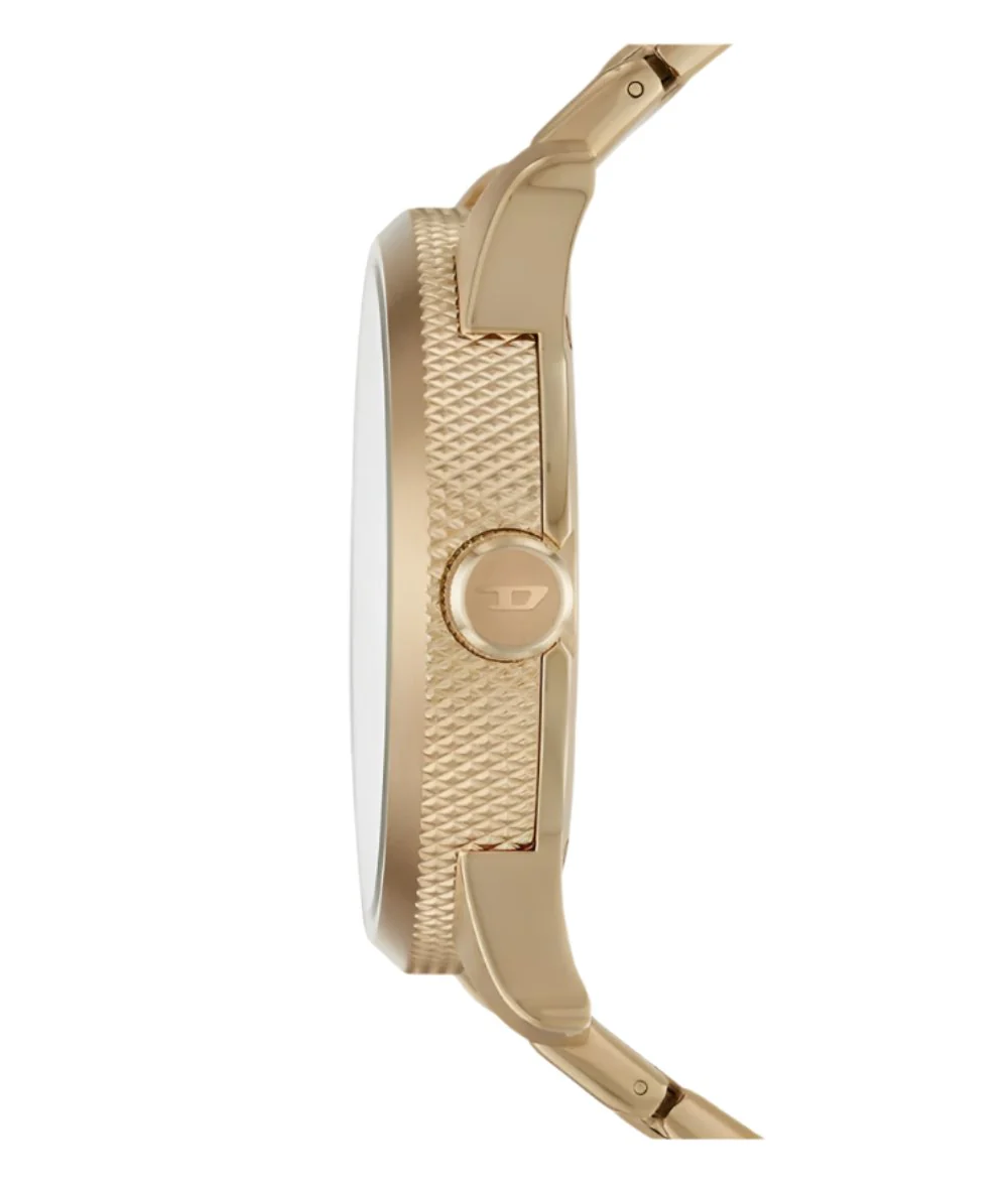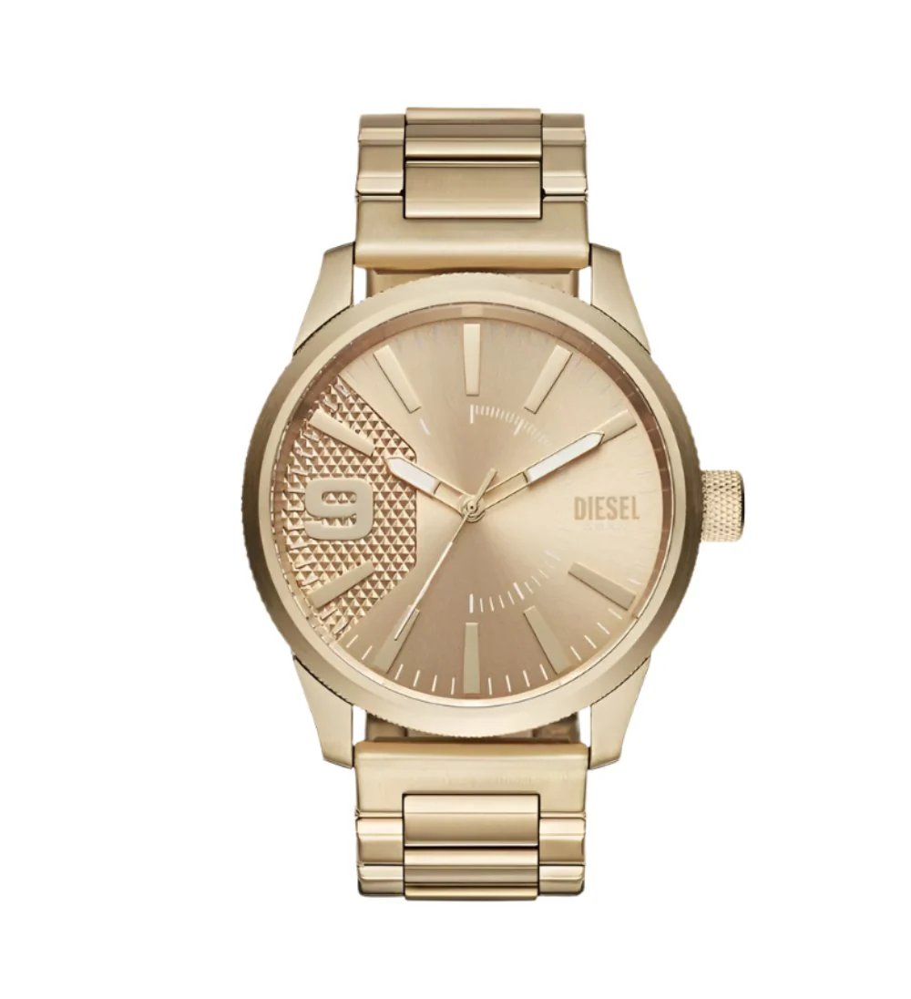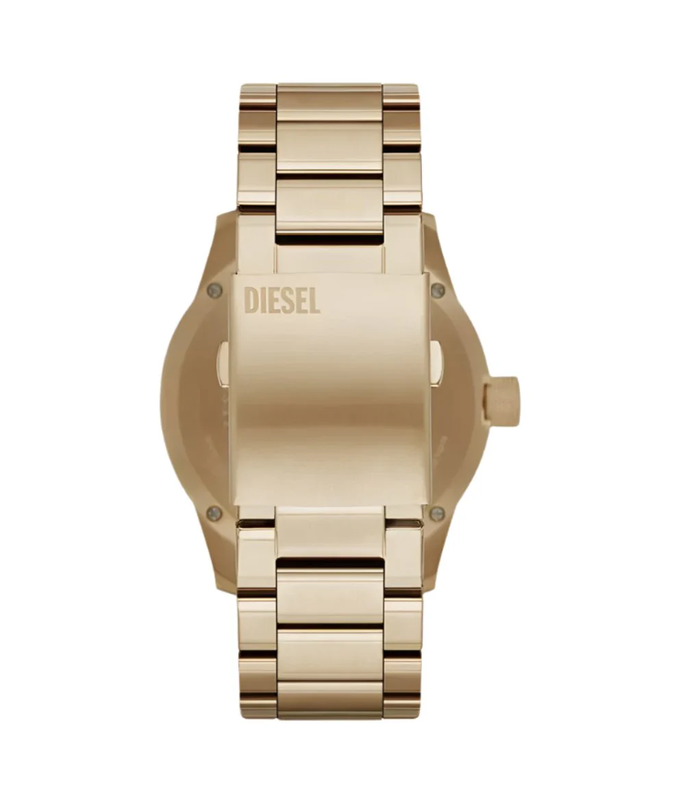 The Diesel Rasp Gold DZ1761 men’s watch captures attention with its bold 46mm stainless steel case and radiant gold dial, delivering a refined yet powerful design statement. Crafted for those who appreciate both durability and style, it features a gold stainless steel bracelet with a secure foldover clasp and mineral crystal glass for lasting clarity. The quartz three-hand movement ensures precise timekeeping, while a 5 ATM water resistance rating offers added confidence for everyday wear. In the world of men’s watches, this piece stands out for its seamless blend of rugged construction and modern elegance, making it a standout addition to any collection.