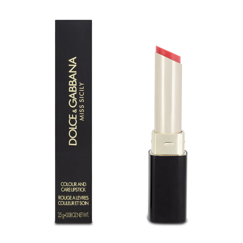 Indulge in Dolce & Gabbana’s Miss Sicily lipstick—your go-to for vibrant colour, glossy shine, and nourishing balm care. Effortlessly achieve a dewy finish with its ultra-light texture. Perfect for a quick Flash Lip Look or a sophisticated layered effect.