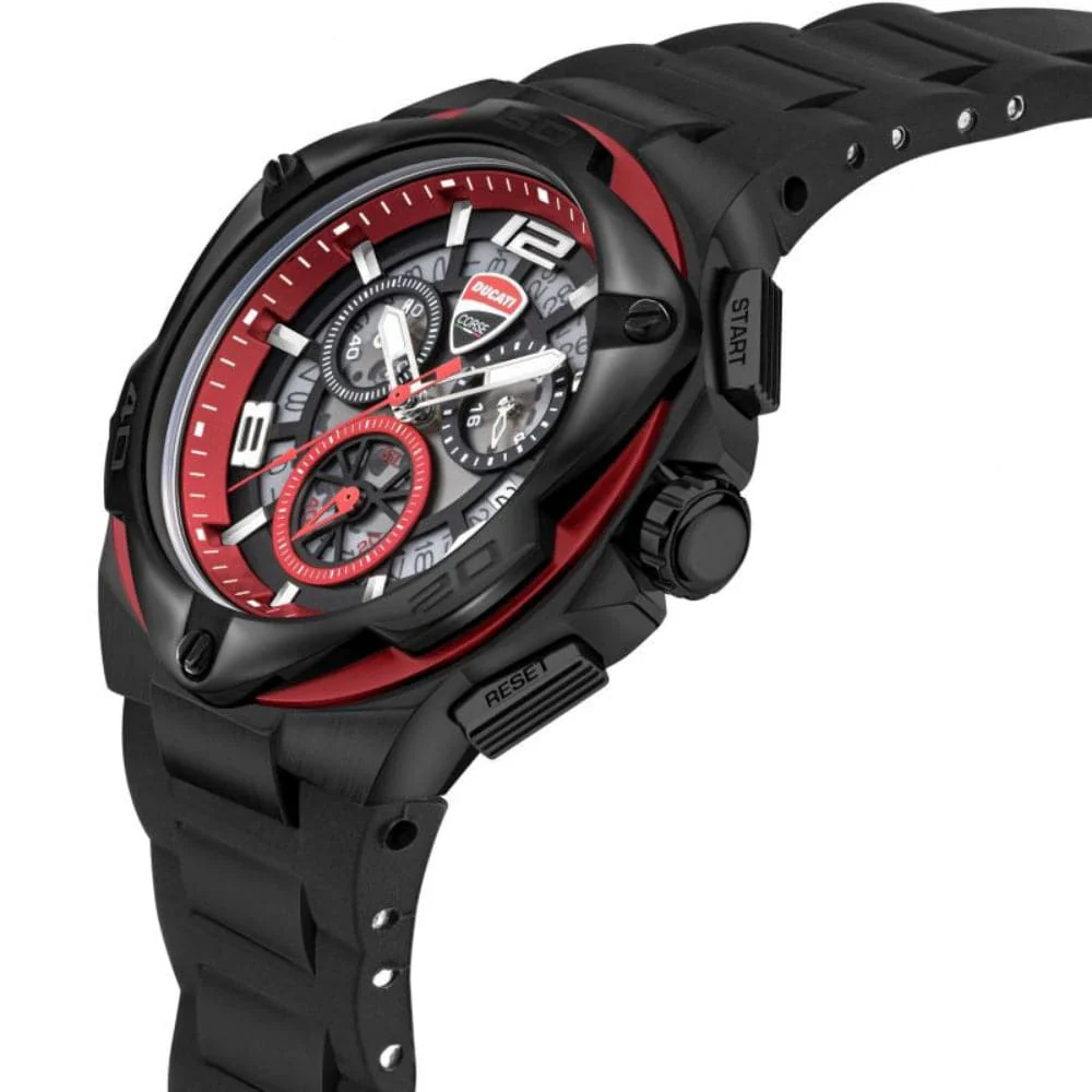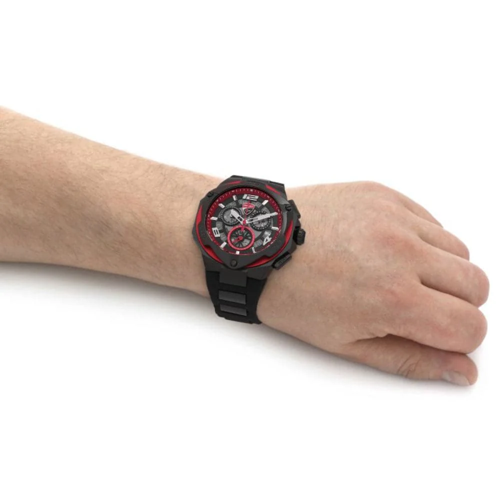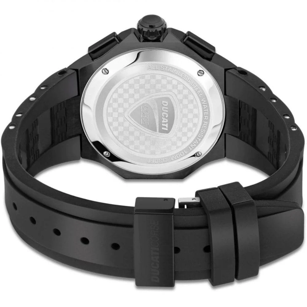 Ducati Motore DTWGO0000304 is a functional and handsome Gents watch. Case is made out of Stainless Steel while the dial color is Black. The features of the watch include (among others) a chronograph. 100 meters water resistance will protect the watch and allows it to get submerged in the water for everyday usage including swimming, but not high impact water sports.