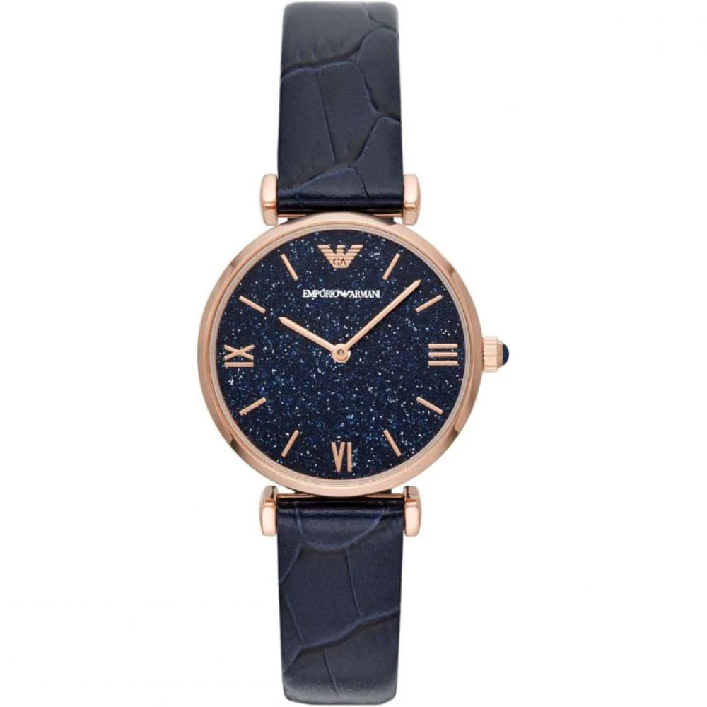 Emporio Armani AR11424 is an incredible interesting Ladies watch. Case is made out of Stainless Steel, which stands for a high quality of the item and the Blue dial gives the watch that unique look. In regards to the water resistance, the watch has got a resistance up to 30 meters. It means it can be worn in scenarios where it is likely to be splashed but not immersed in water. It can be worn while washing your hands and will be fine in rain.