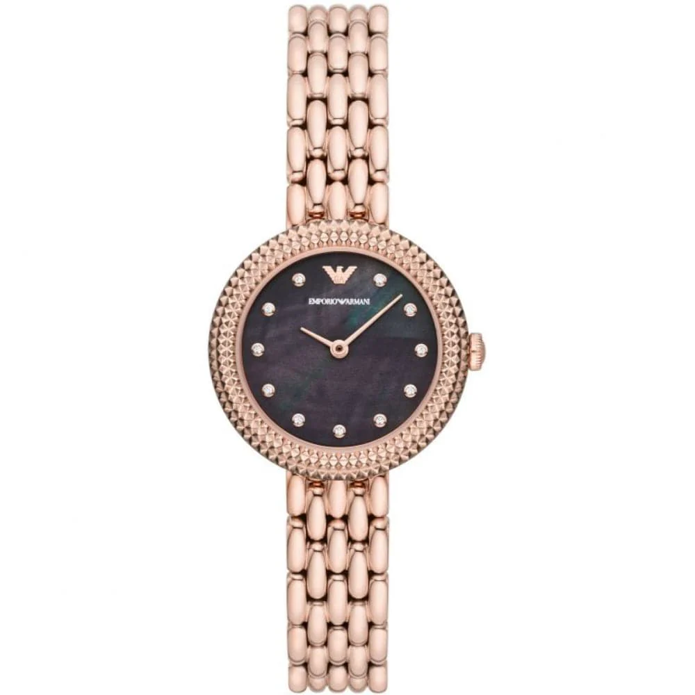 Emporio Armani AR11432 is a beautiful and trendy Ladies watch. Material of the case is Stainless Steel while the dial color is Black. 30 meters water resistance will protect the watch and allows it to be worn in scenarios where it is likely to be splashed but not immersed in water. It can be worn while washing your hands and will be fine in rain.
