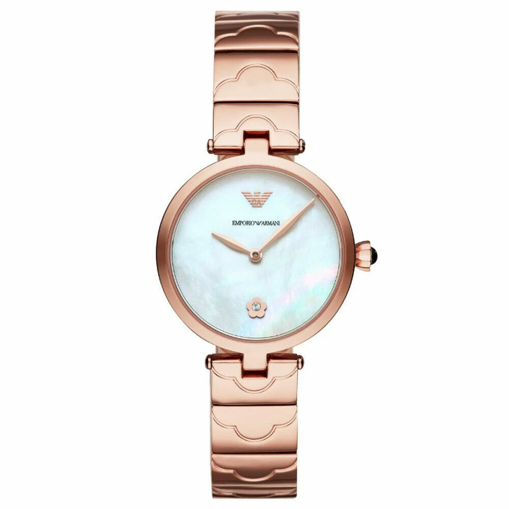 As your gaze falls upon the dial, you’ll discover a delightful detail at the 6 O’clock marker—a petite flower featuring a ‘c’ at its heart. This is a testament to the thoughtful craftsmanship and attention to detail that defines the Emporio Armani brand. Every glance at this watch reminds you of the intricate artistry and the commitment to excellence that comes with every piece of Emporio Armani.