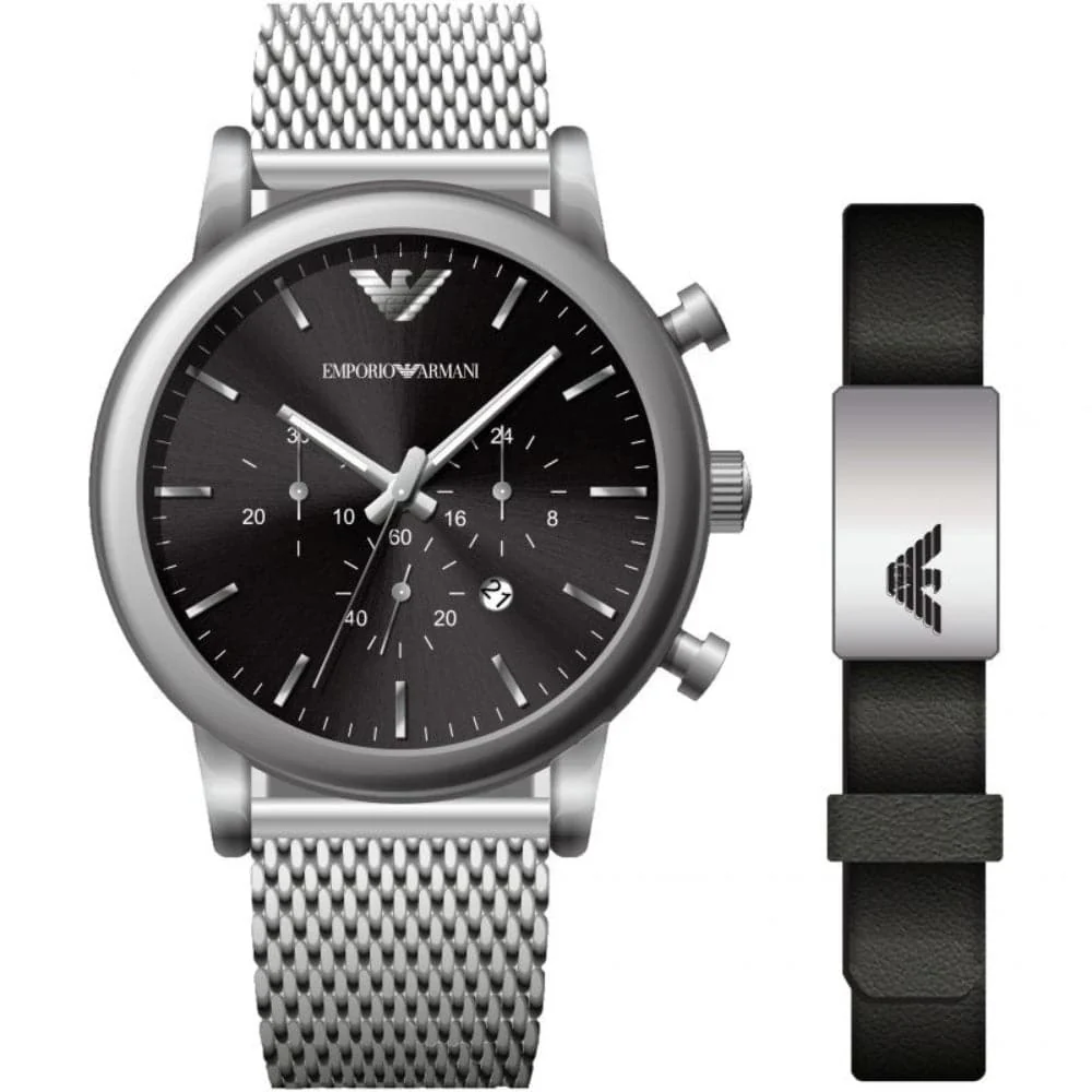Emporio Armani Black Dial With Mesh Bracelet Strap Men Watch AR80062SET