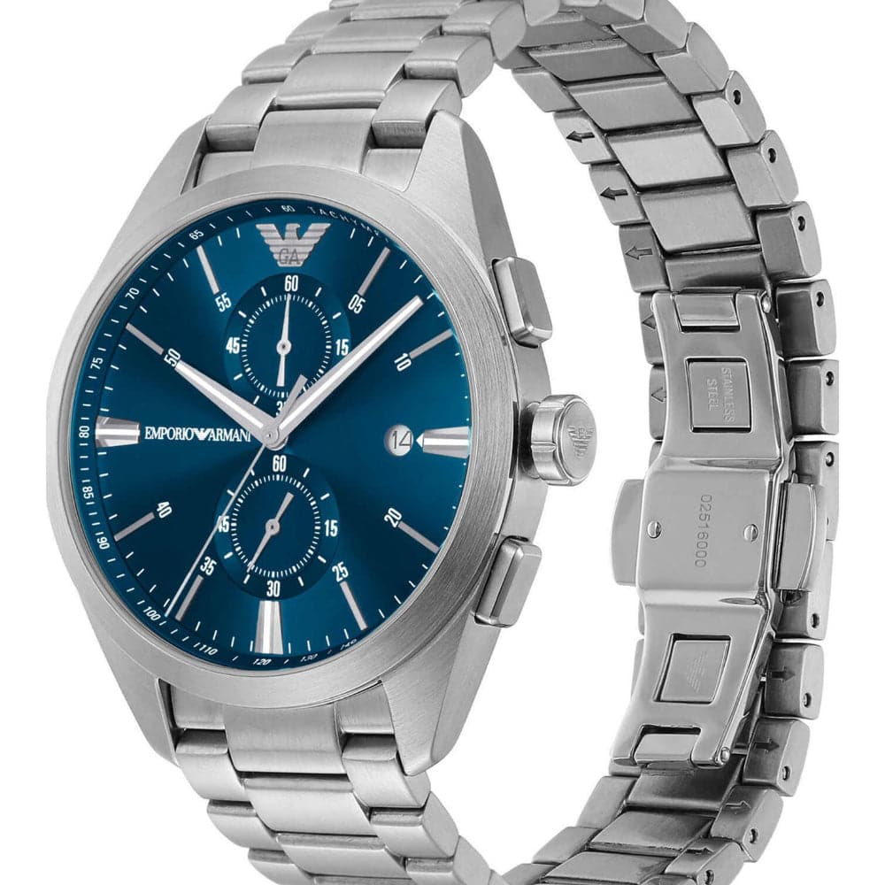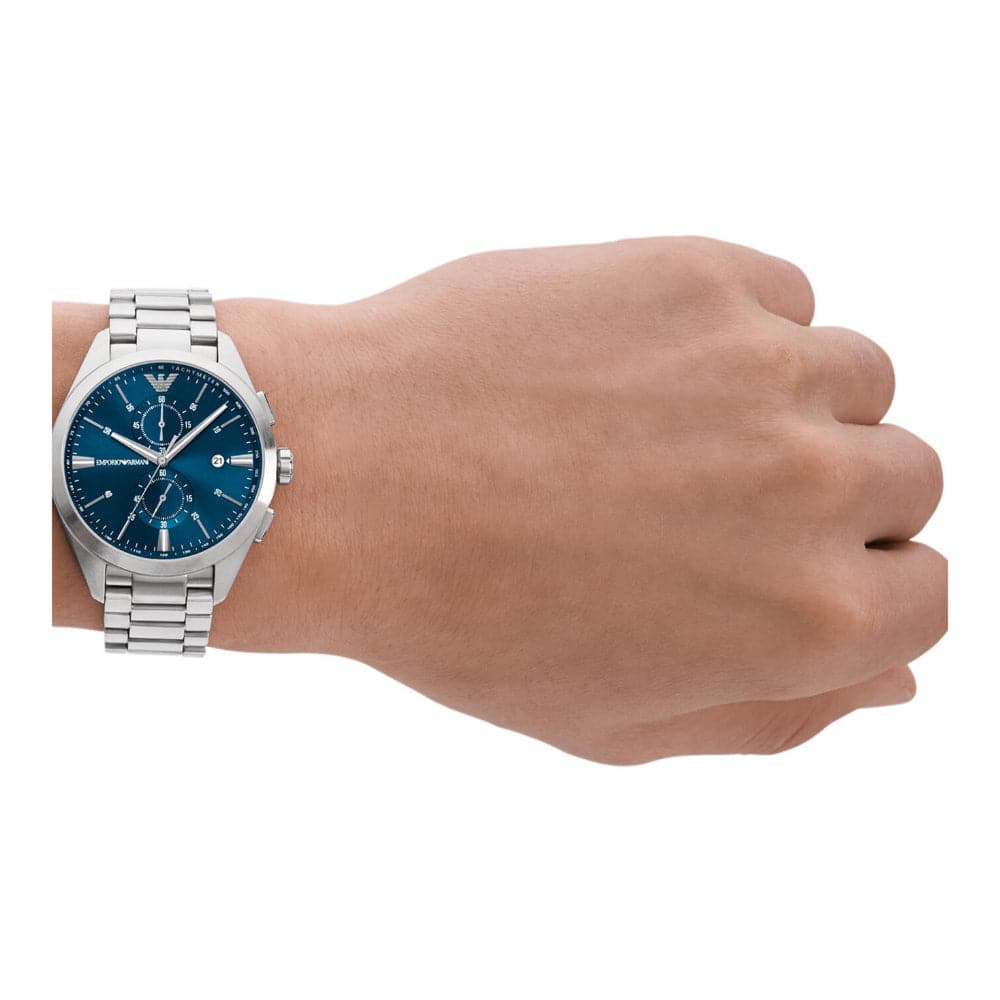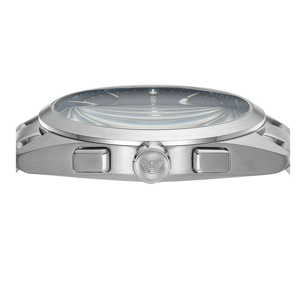 This Emporio Armani chronograph watch is a perfect timepiece for those who value style and functionality. With a sleek stainless steel bracelet and a striking 43 mm sunray dial, this watch is sure to turn heads. The chronograph movement ensures accurate timekeeping while adding a touch of refinement.