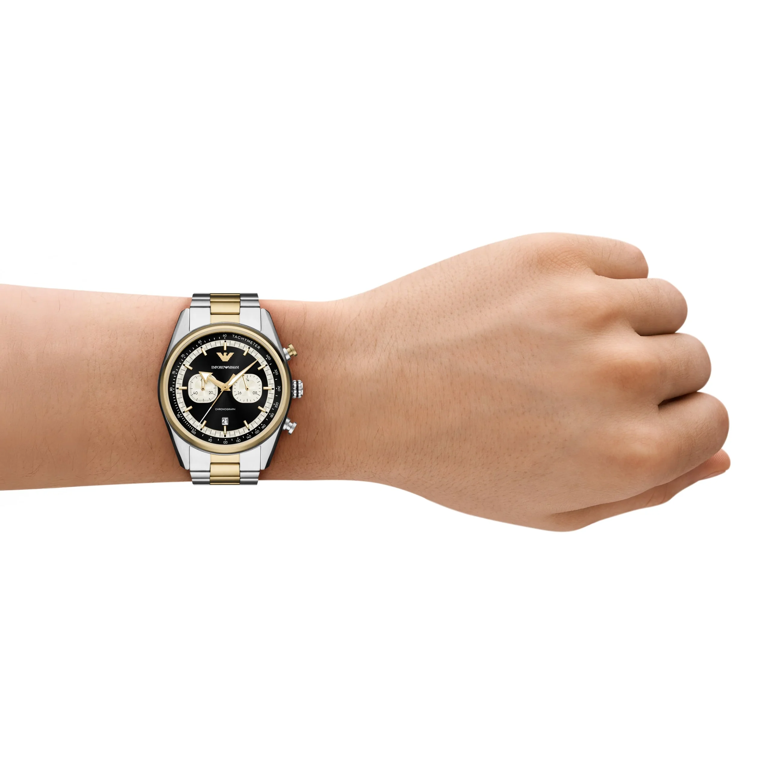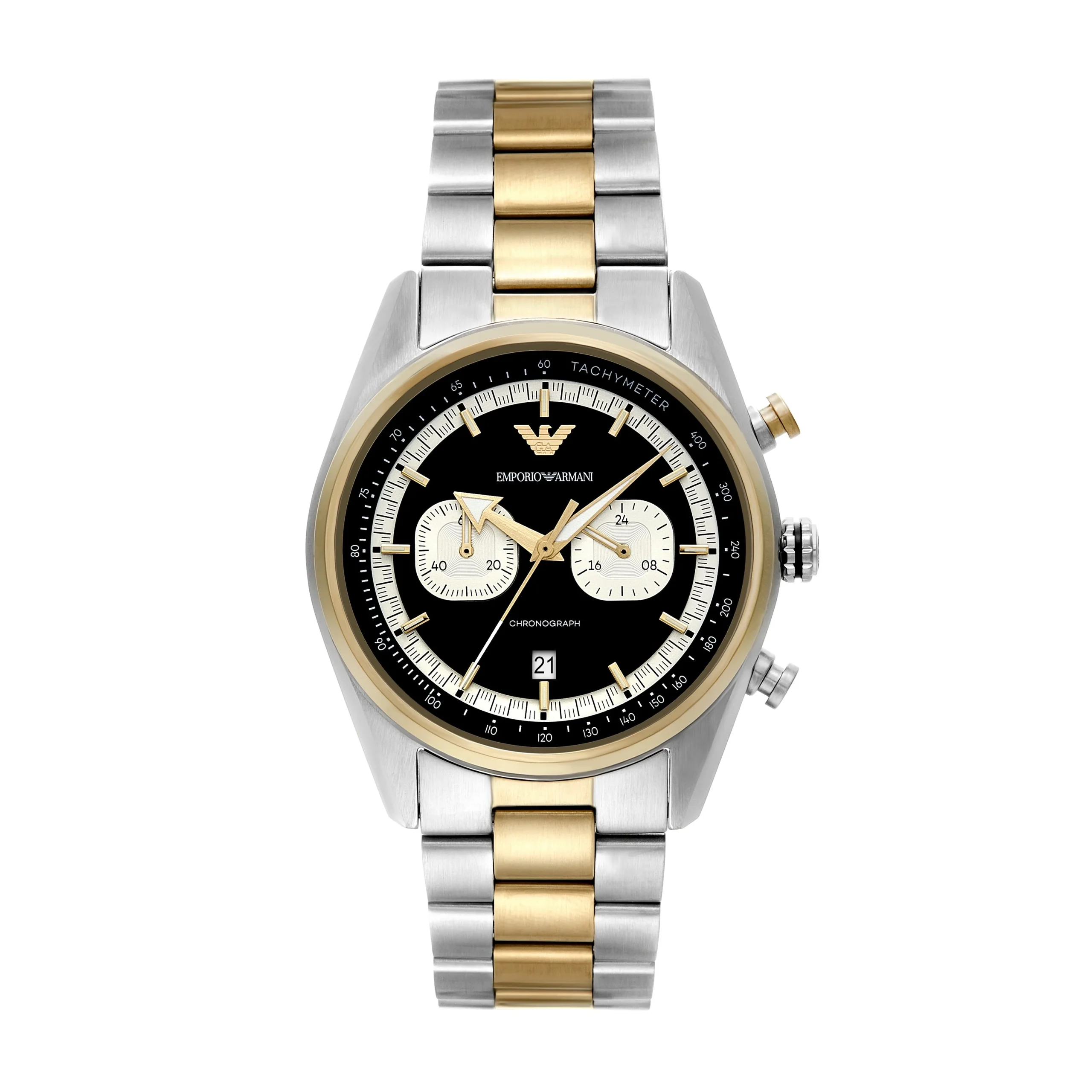 Crafted for the modern man, the Emporio Armani Chronograph AR11678 is a refined men’s watch that blends bold design with timeless elegance. Its 42mm stainless steel case houses a striking black dial with white sub dials, offering sharp contrast and elevated readability. The brushed silver and gold-tone bracelet adds a luxurious finish, combining warm and cool metals for a sophisticated edge. Precision quartz movement ensures reliable chronograph functionality, while the mineral crystal and 5 ATM water resistance enhance durability for daily wear. Perfectly balancing aesthetic appeal and performance, this stainless steel watch captures the essence of contemporary Italian craftsmanship in the luxury watches category.