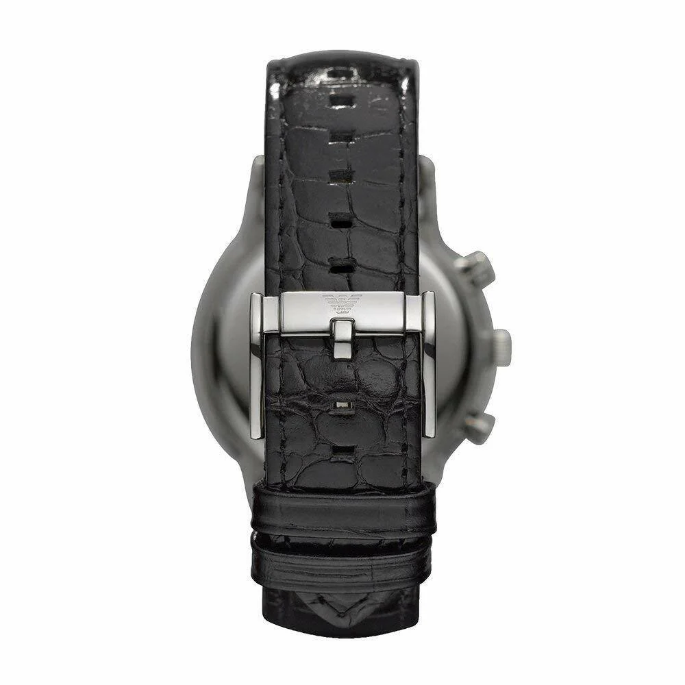 Striking a perfect balance between modern design and timeless appeal, the Emporio Armani AR2447 men’s watch showcases a bold black dial set within a 43mm stainless steel case. Enhanced by refined chronograph subdials and a date display, this timepiece is driven by precise quartz movement for reliable performance. The sleek black leather strap adds both comfort and sophistication, making it ideal for daily wear or formal occasions. A mineral crystal glass protects the dial, offering clarity and durability. This men’s watch stands out in the luxury chronograph category with its minimalist elegance, premium materials, and the iconic Emporio Armani emblem, delivering optimal style with functional precision.