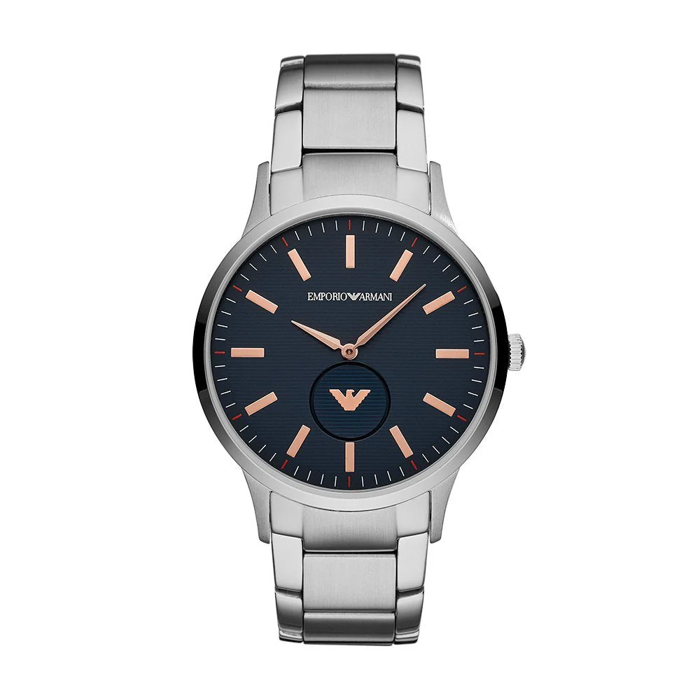 Discover the epitome of sophistication with the Emporio Armani Men’s Watch, a masterful blend of precision and style. This exquisite timepiece is crafted to meet the expectations of the discerning gentleman who values both form and function. At its core, the watch boasts a striking navy blue dial, protected by a robust mineral window, which ensures durability while exuding an air of understated elegance. The analog display seamlessly merges classic and contemporary design, offering a timeless appeal enhanced by the sleek stainless steel case.