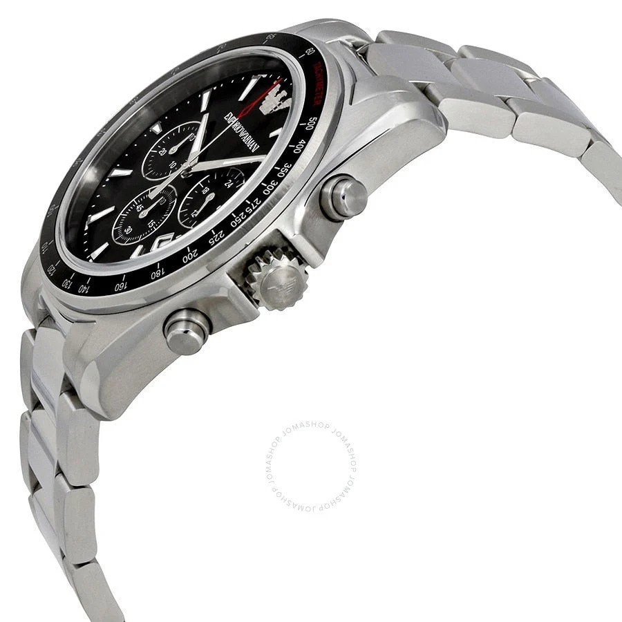 Discover the allure of the Emporio Armani Sigma Black Dial Chronograph Men’s Watch, a masterpiece that seamlessly combines elegance with precision. This timepiece is crafted with a robust stainless steel case, measuring 4.4 centimeters in diameter and 1.2 centimeters thick, exuding a timeless charm that resonates with the sophisticated gentleman. The sleek stainless steel bracelet, with a width of 2.3 centimeters, ensures the watch hugs your wrist with a perfect blend of comfort and style.