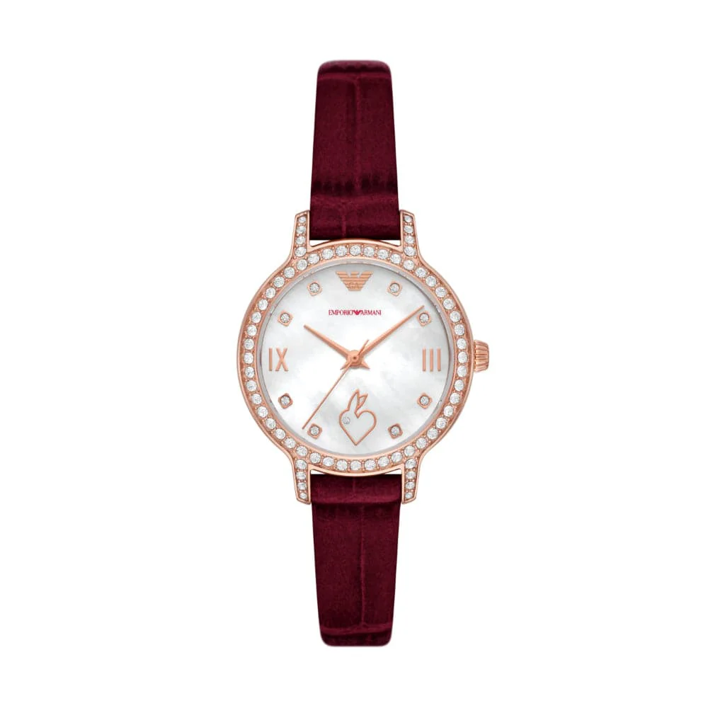 Emporio Armani White Dial Burgundy Leather Strap Women Watch AR11510