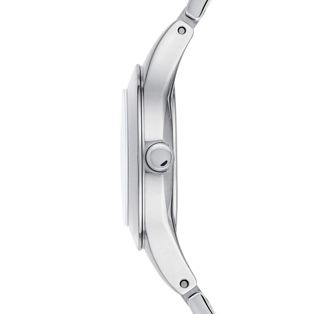 Weighing a mere 50 grams, the Emporio Armani AR7425 is a lightweight marvel, ensuring comfort throughout the day. This timepiece, with its elegant silver hue and mesmerizing mother of pearl dial, is more than just a watch; it is a statement of elegance and an embodiment of refined taste. Whether paired with a professional ensemble or worn as a daily accessory, this watch whispers sophistication and timeless style with every tick.
