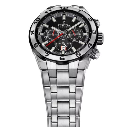 The Festina Chrono Bike F20670/6 men’s watch captures sporty elegance with a bold black dial and polished 316L stainless steel construction. Designed for those who value precision and durability, this chronograph timepiece features a robust 44.5mm case paired with a 28.5mm brushed steel bracelet that ensures a secure and comfortable fit. The mineral crystal lens enhances clarity while protecting against daily wear. Powered by a reliable quartz M0S20 movement and offering 100 meters of water resistance, it is ideal for both active and refined lifestyles. A standout in the watches category, this model exemplifies Festina’s commitment to craftsmanship and contemporary design.