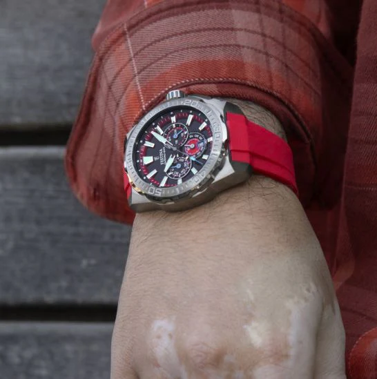 Powered by a precise MOS20 quartz movement, this chronograph not only keeps you on time but also features a convenient date window positioned at 6 o’clock. The mineral crystal protects the dial from everyday shocks and scratches, thus ensuring your watch remains looking pristine. With an impressive water resistance of up to 20 ATM, this timepiece is ready to withstand the splashes of adventure, whether you’re swimming, biking, or enjoying a rainy day.