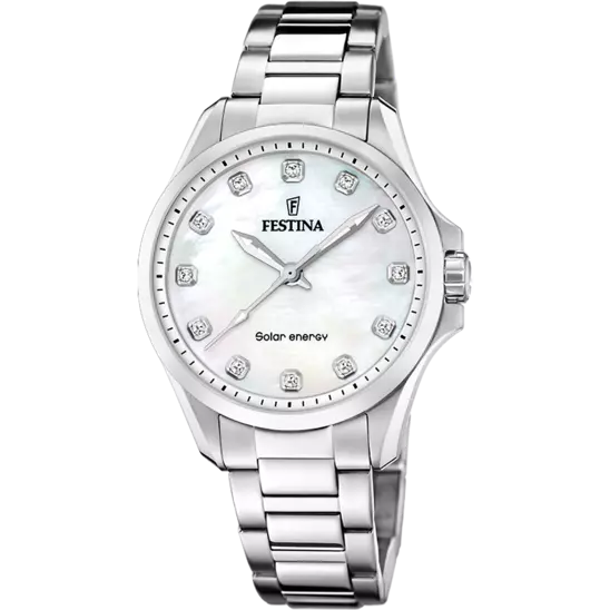 Gracefully refined and powered by innovation, the Festina Solar Energy F20654/1 women’s watch blends timeless design with modern functionality. Crafted from corrosion-resistant 316L stainless steel, its polished silver bracelet and 34mm case form a harmonious silhouette around a radiant cream dial. The minimalist display, enhanced by crystal hour markers and mineral glass, captures both elegance and durability in a single glance. A solar-powered quartz movement ensures reliable performance without the need for battery replacements, while 5ATM water resistance adds everyday practicality. As part of the premium watches category, this piece offers a perfect balance of sophistication and sustainable innovation, suited for both daily wear and special occasions.