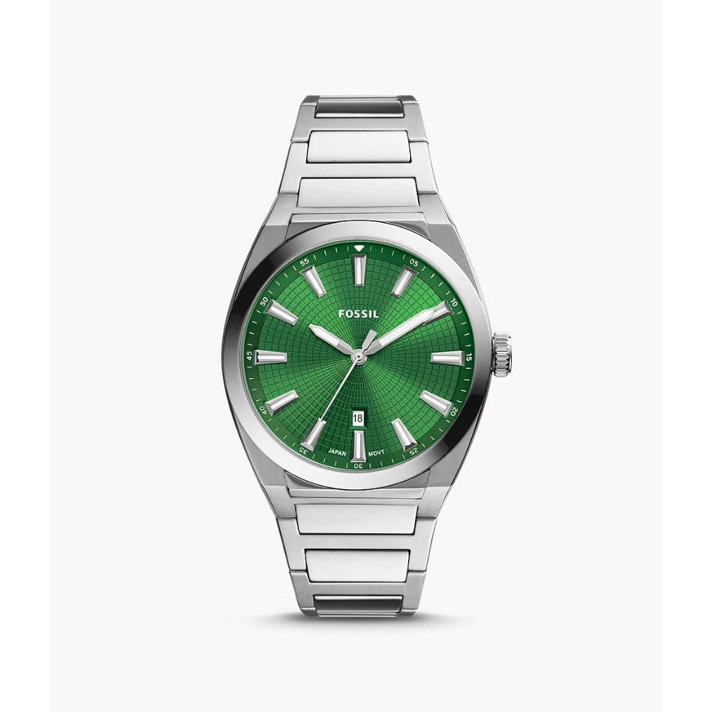 Fossil Green Dial Silver Stainless Steel Strap Men Watch FS5983