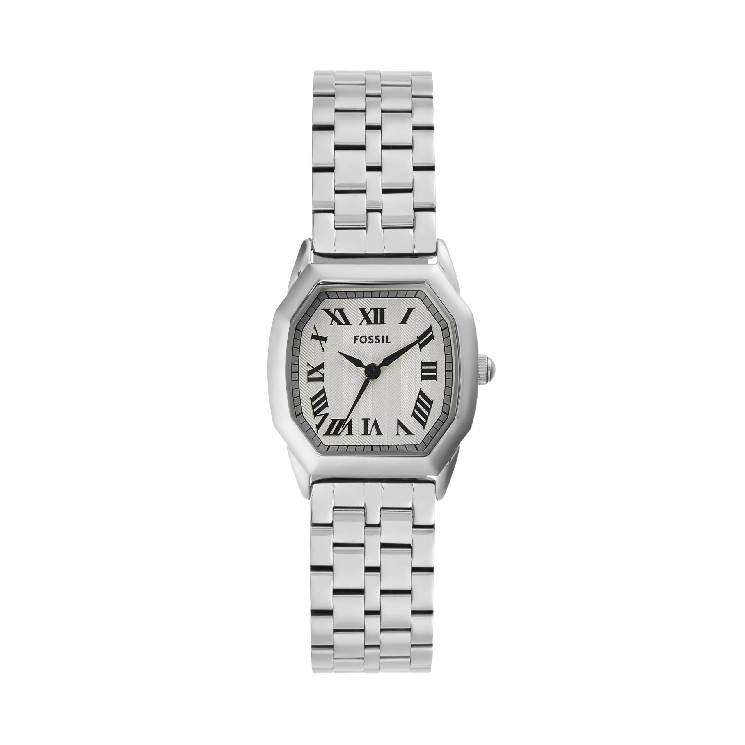 Refined and timeless, the Fossil Harlow Three-Hand Cream Dial Stainless Steel Watch ES5363 is a women’s watch that blends everyday versatility with classic elegance. The polished stainless steel bracelet and case frame a soft cream dial adorned with Roman numerals, offering understated charm in every detail. Crafted with a 27mm case and mineral crystal glass, it delivers durability without compromising on style. The sleek quartz movement ensures accurate timekeeping, while water resistance up to 30 meters provides added peace of mind. Designed for comfort with a double press deployant buckle and adjustable fit, this stainless steel timepiece is the perfect finishing touch to any jewelry collection, offering a seamless transition from casual to formal wear.