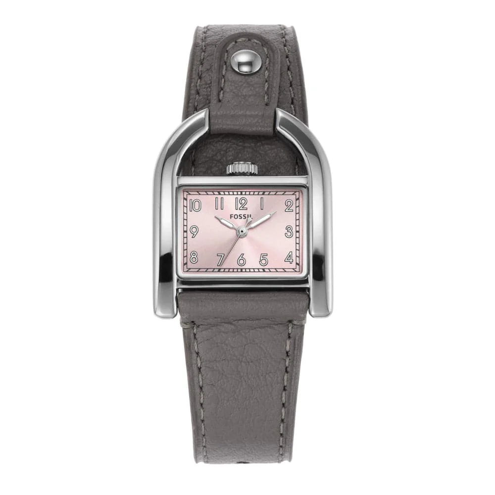 This 28mm Harwell features a pink sunray dial, three-hand movement and light gray LiteHide™ leather strap.