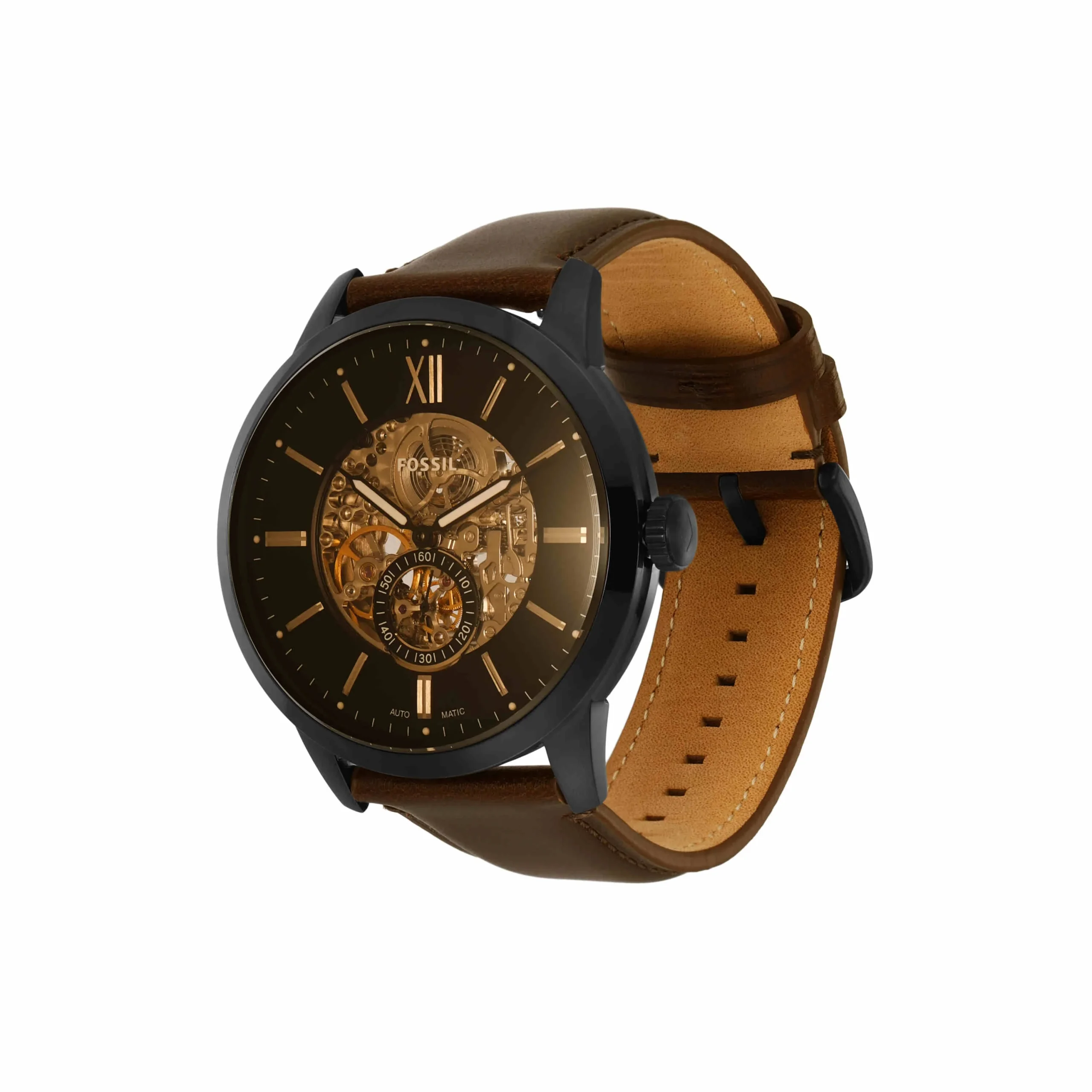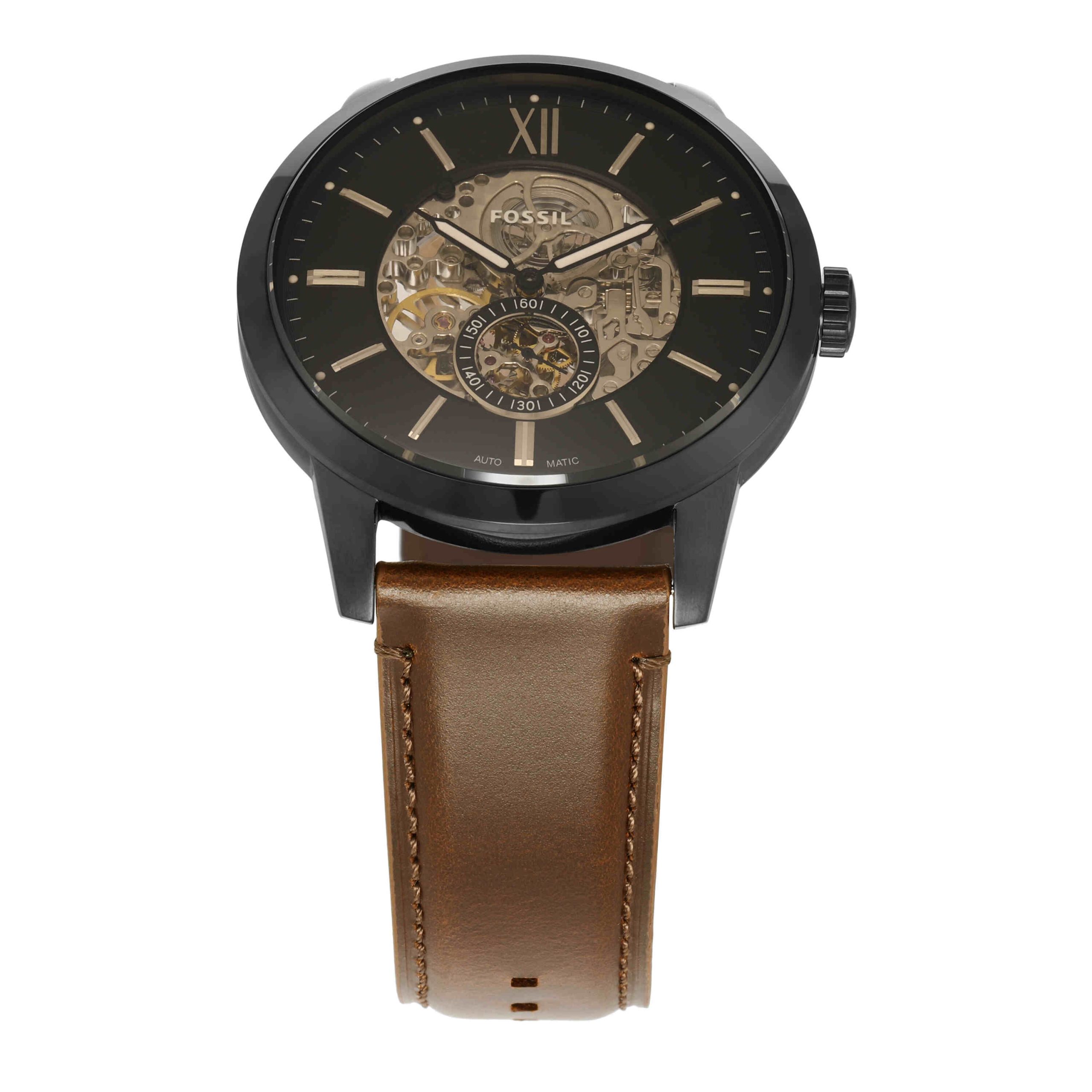 Embrace the intricate craftsmanship of this Fossil Townsman automatic men’s watch, a refined masterpiece that runs solely on the natural motion of the wrist, requiring no battery. Housed in a robust 48 millimetre stainless steel case with a 11 millimetre thickness, the round design features a striking skeleton dial that invites admiration of the mesmerising mechanical movement within. The timepiece is paired with a rich brown leather strap, measuring 22 millimetres wide, and is protected by a scratch-resistant mineral crystal and 50-metre water resistance, blending enduring elegance with practical durability.